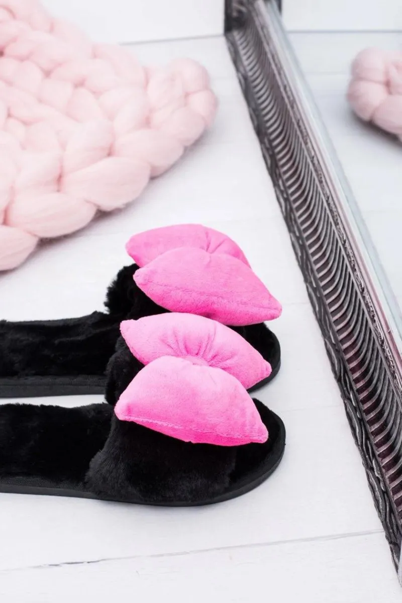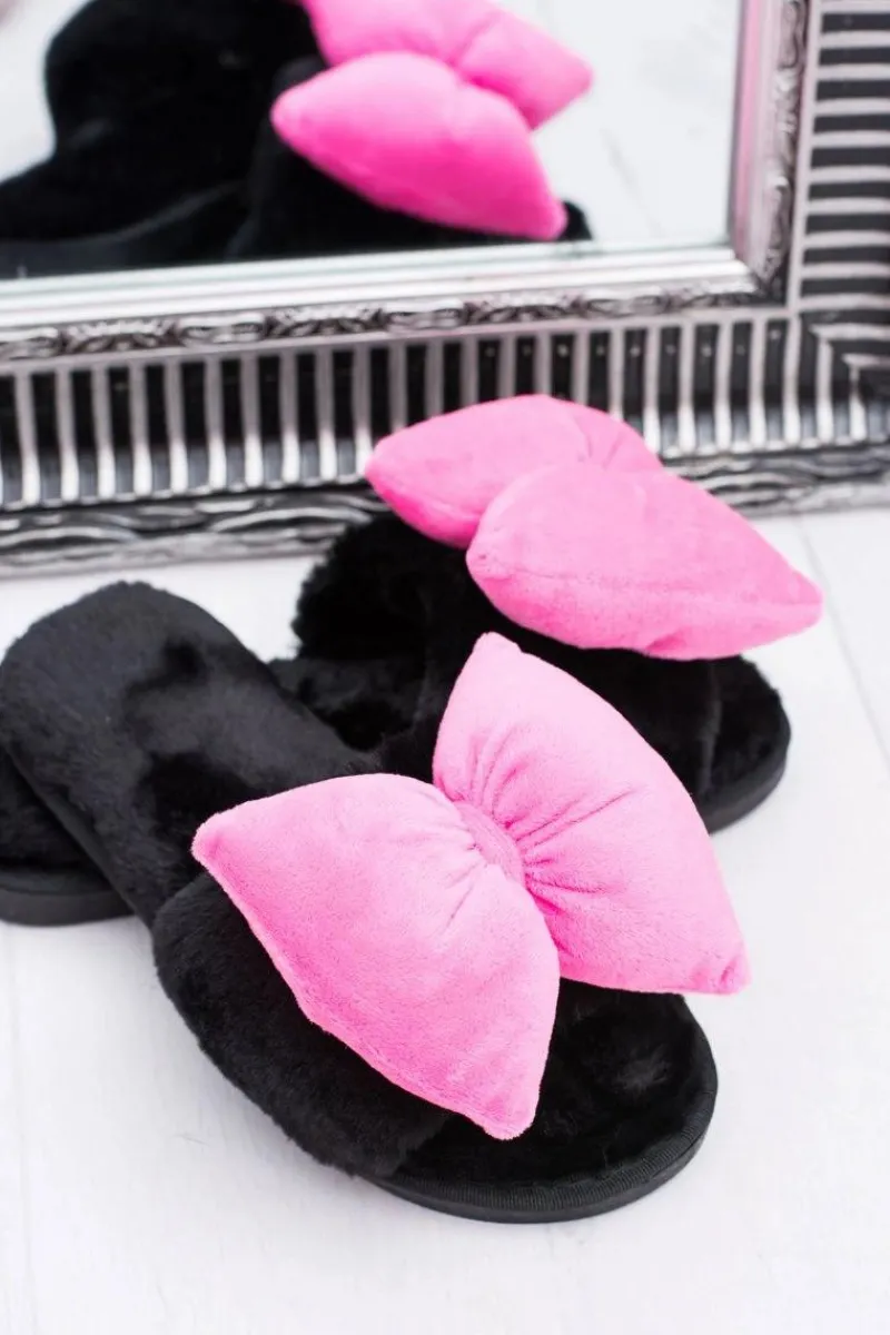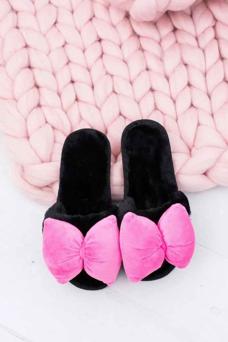 New Czarne Damskie Klapki Lu Boo Duże Różowe Kokardy Floppy Damskie Klapki Damskie Klasyczne