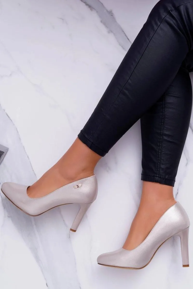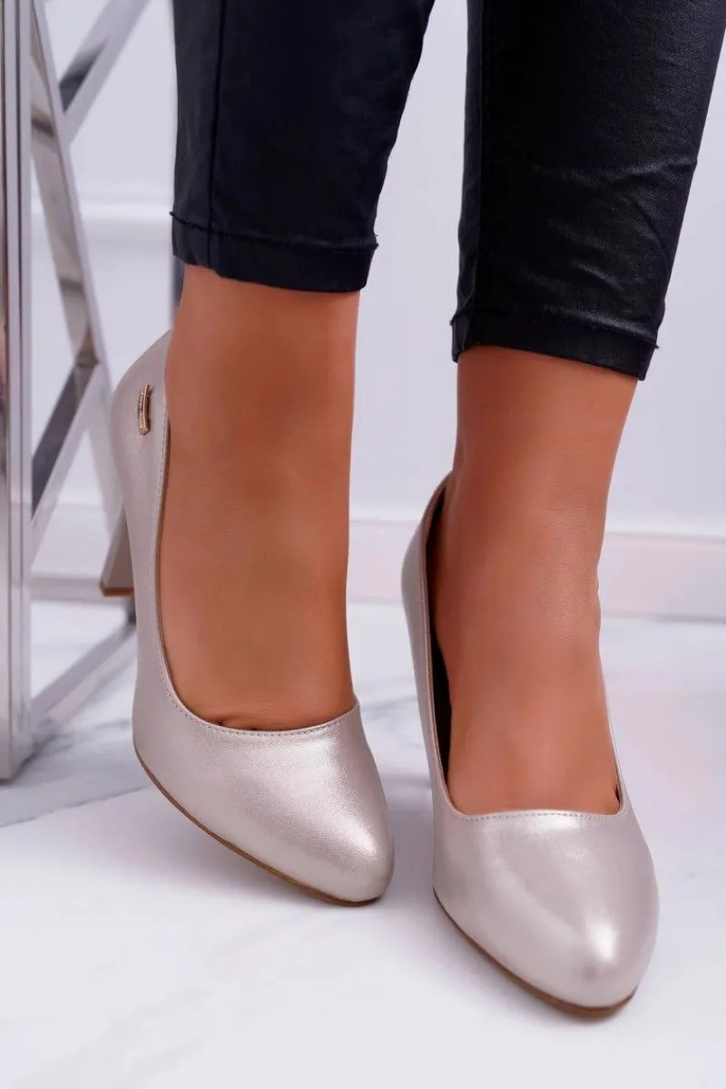 New Czółenka Damskie Na Słupku Sergio Leone 1457 Złote Campbell Damskie Czółenka Na Słupku|Czółenka Klasyczne