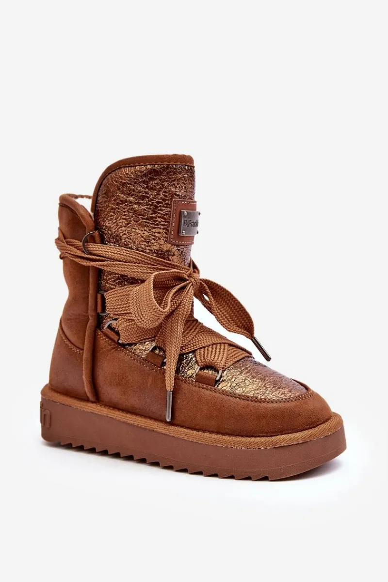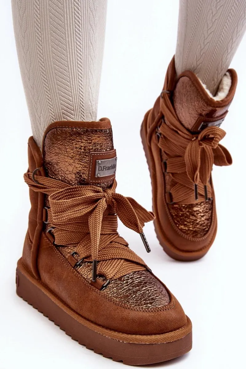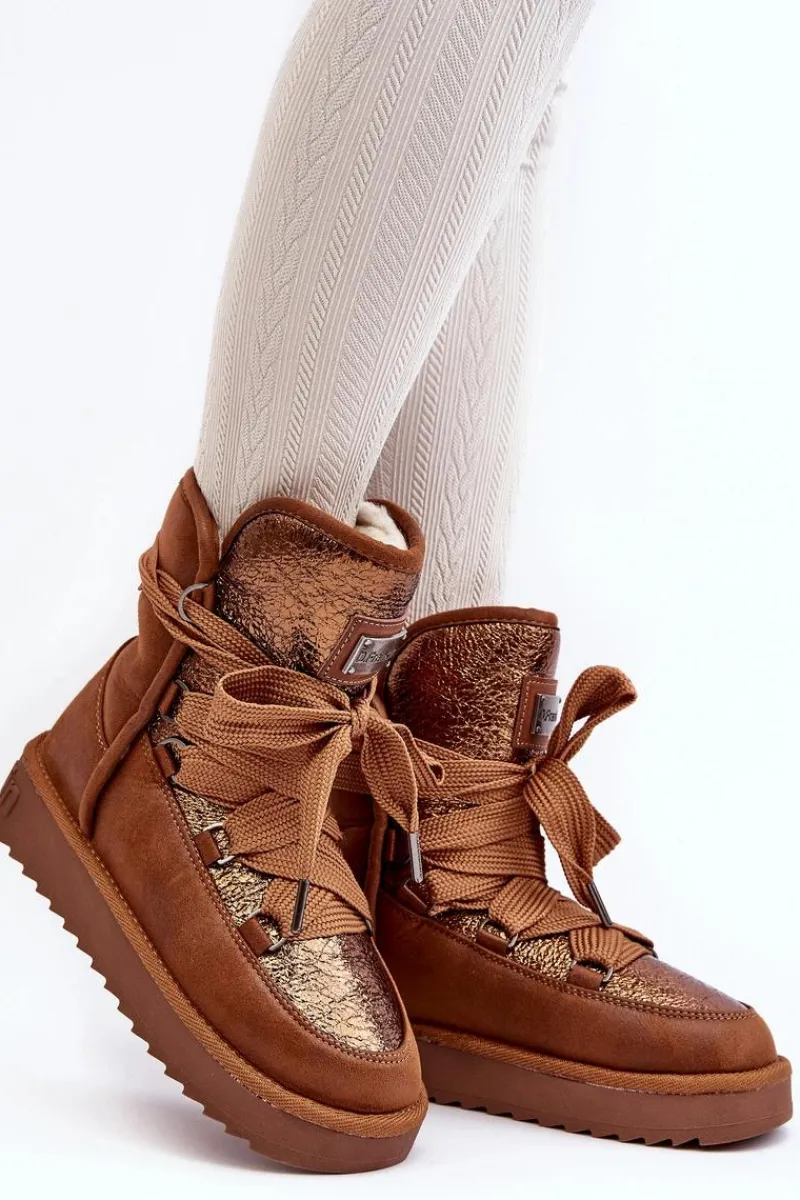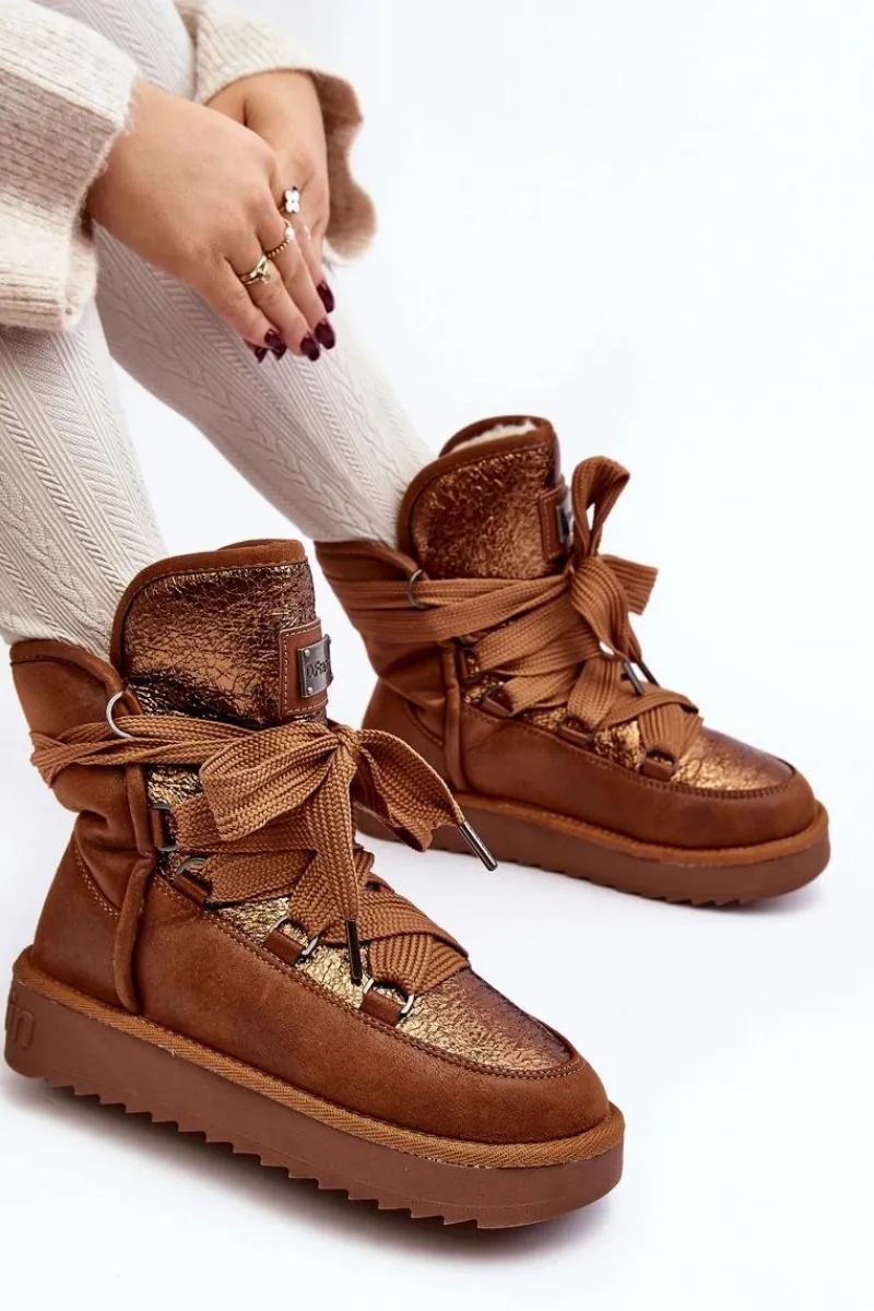 Śniegowce damskie wykonane z wysokiej jakości tkaniny z mikrofibry. Przód butów został ozdobiony połyskującym detalem, co nadaje im stylowego charakteru. Dodatkowym atutem jest fakt, że są wykonane z materiałów wegańskich. Środek ocieplony syntetycznym futerkiem. Model ten posiada grube sznurowadła. Modne i funkcjonalne obuwie, które z pewnością wyróżni się w Twojej kolekcji! Przy wyborze rozmiaru prosimy sugerować się tabelą rozmiarów.