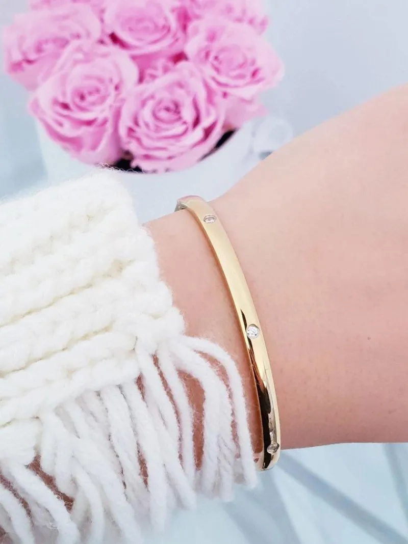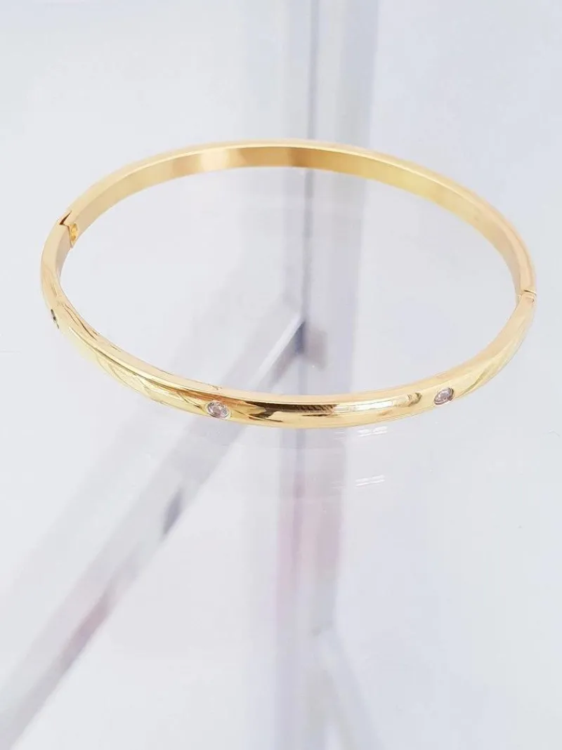 My kobiety kochamy błyskotki. Każda stylizacja potrzebuje dodatków, a nawet te najmniejsze są bardzo ważne. Mowa tu o pięknej biżuterii, która podkreśli to co najlepsze. Delikatnie zaokrąglona bransoletka wykonana ze stali nierdzewnej z pięknie błyszczącymi się cyrkoniami. Bransoletka rozpina się, przez co jej zakładanie będzie jeszcze łatwiejsze. Sprawdź całą naszą kolekcję biżuterii i wybierz swój ulubiony dodatek.