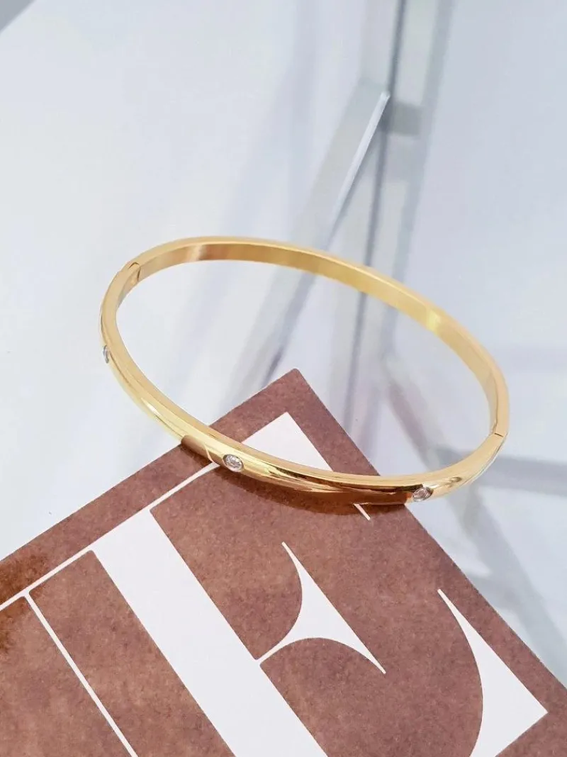 New Damska Bransoleta Stalowa Z Cyrkoniami Złota Ursa Bransoletki
