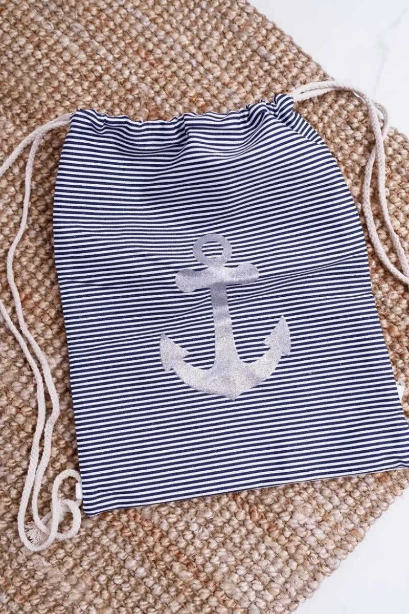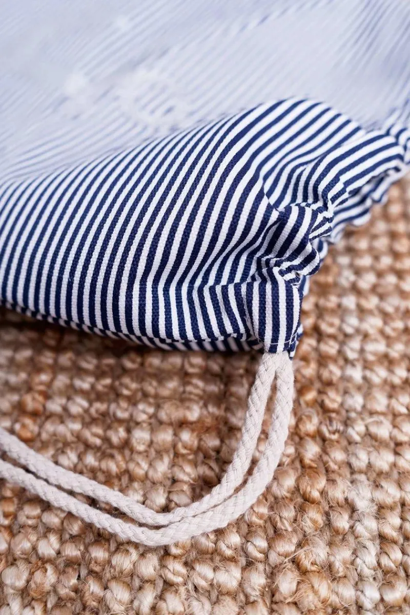 Worek plażowy świetnie pasujący do letniego sezonu. Zmieścisz w nim wszystkie swoje potrzebne rzeczy i zaskoczysz swoimi stylizacjami! Regulowane ramiączka ze sznurka. Brokatowa ozdoba w postaci kotwicy.