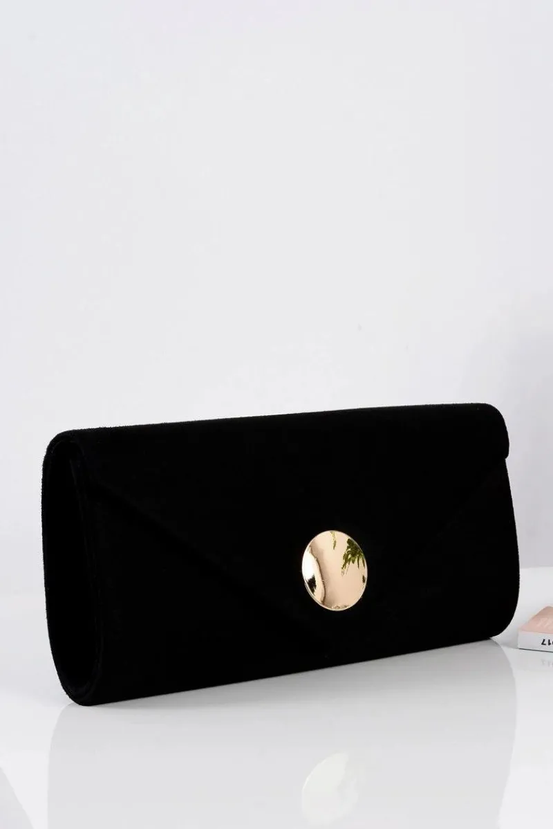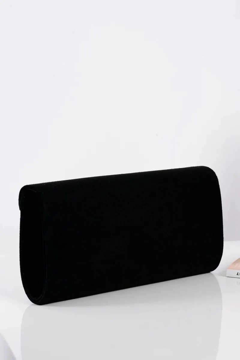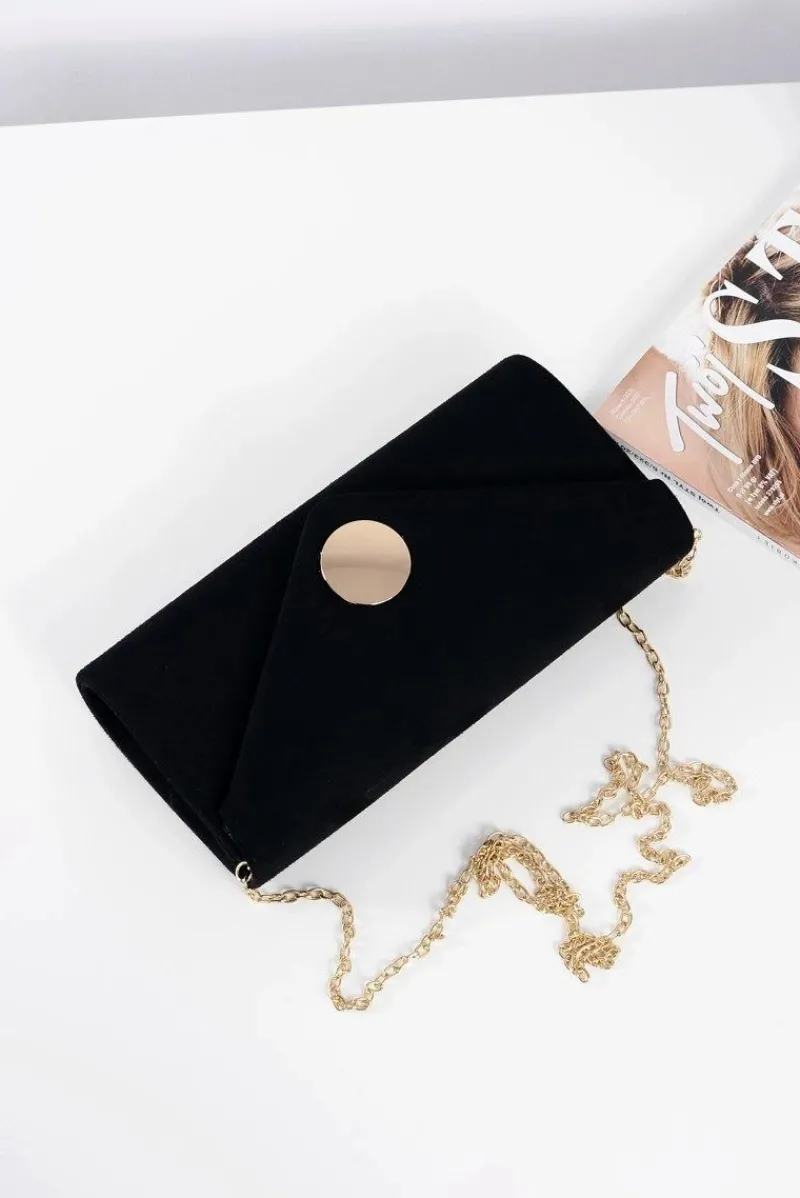 New Damska Torebka Czarna Zamszowa Kopertówka Złoty Łańcuszek Kopertówki