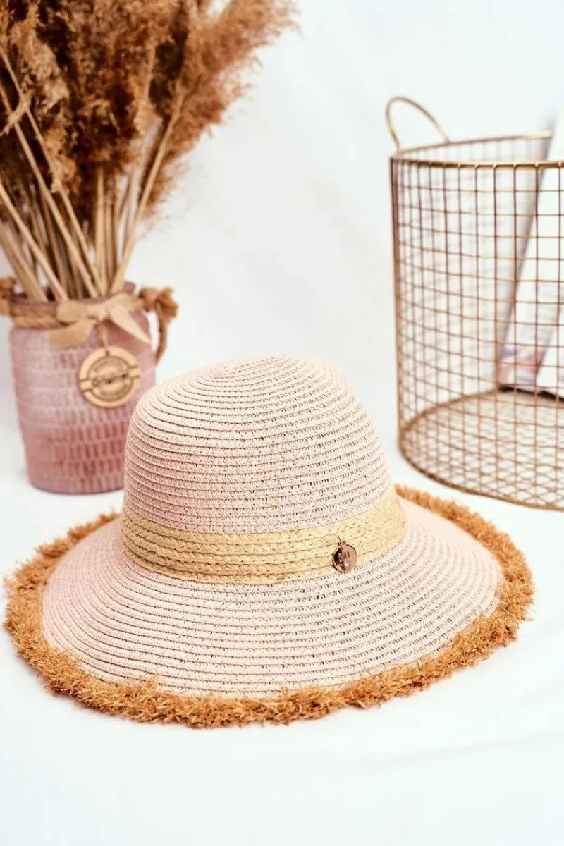 New Damski Kapelusz Na Lato Plażę 100% Papier Różowy Okrycia Głowy