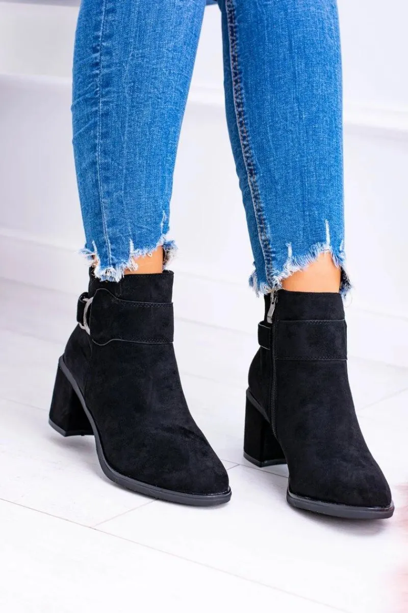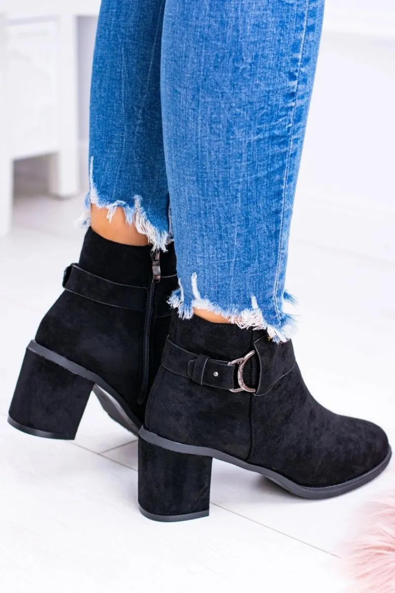 Niezwykle eleganckie botki na słupku! Wykonane z delikatnego w dotyku ekozamszu. W najnowsze trendy wpisują się dzięki modnemu wzornictwu oraz delikatnej klamrze na boku. Świetne na każdą okazję! Idealne dopasowane do stopy, zapinane na zamek. Sprawdź całą kolekcję naszych botków.