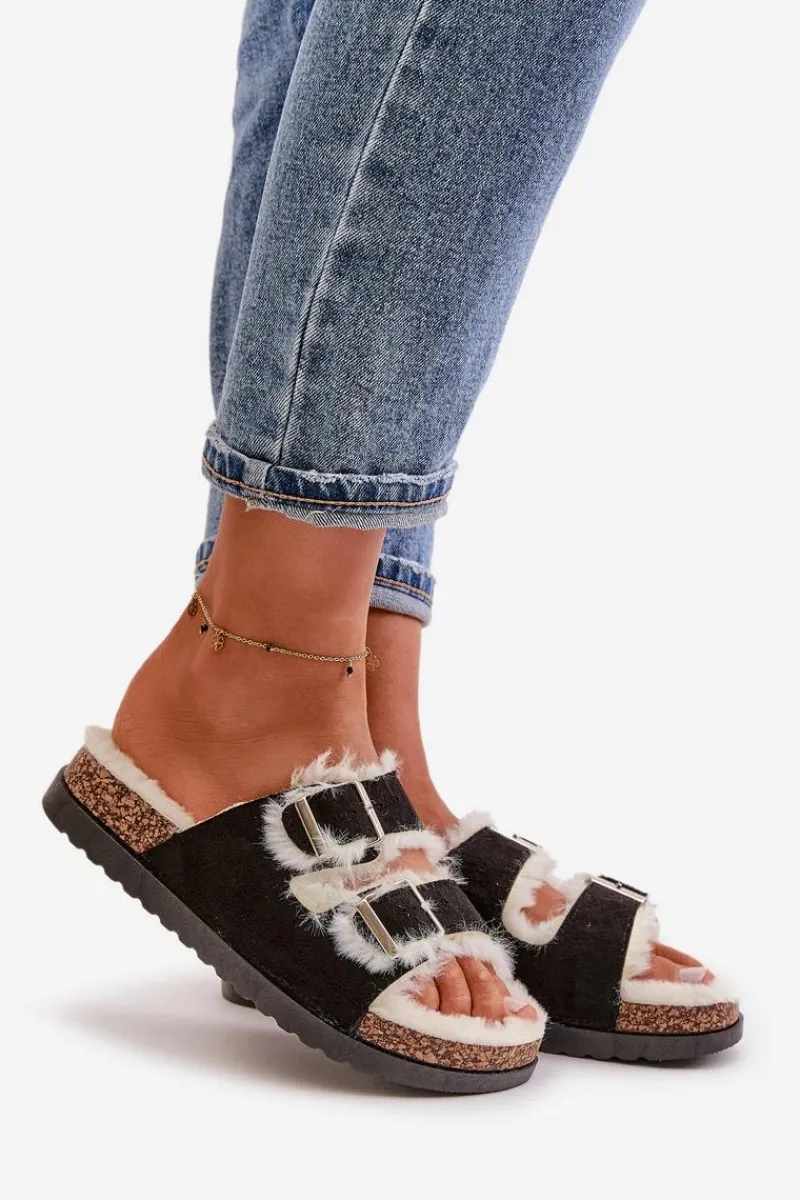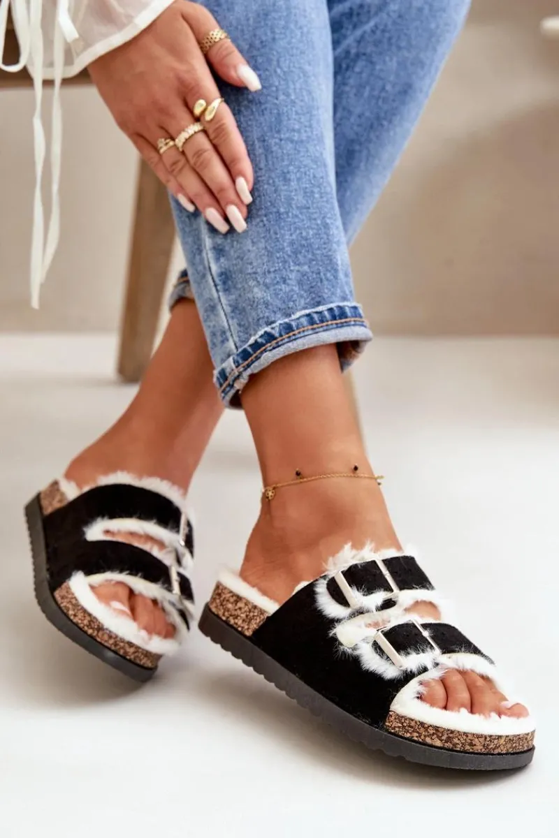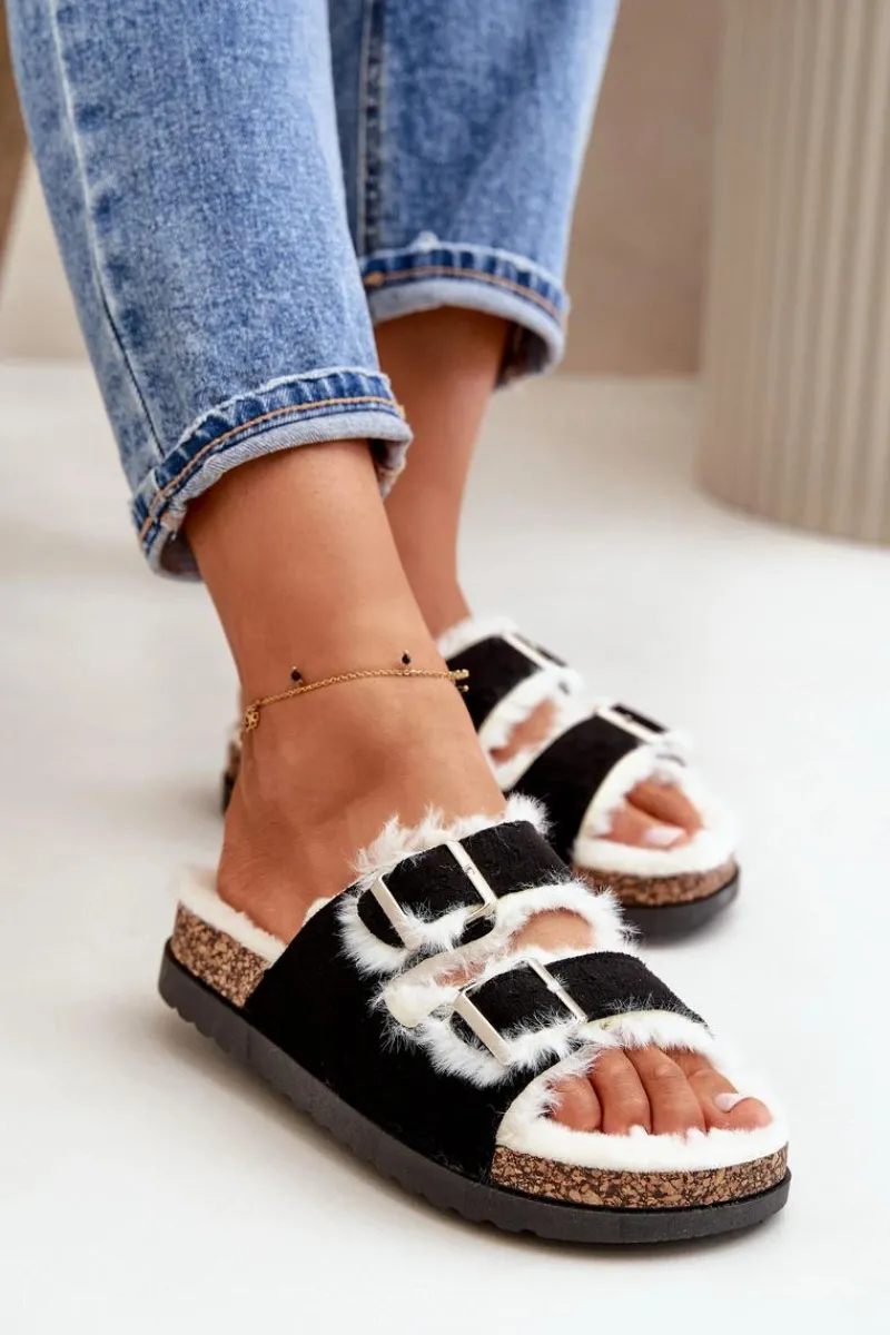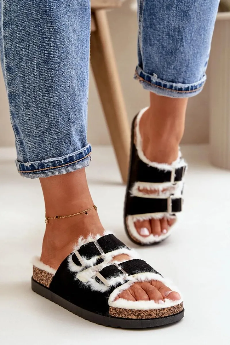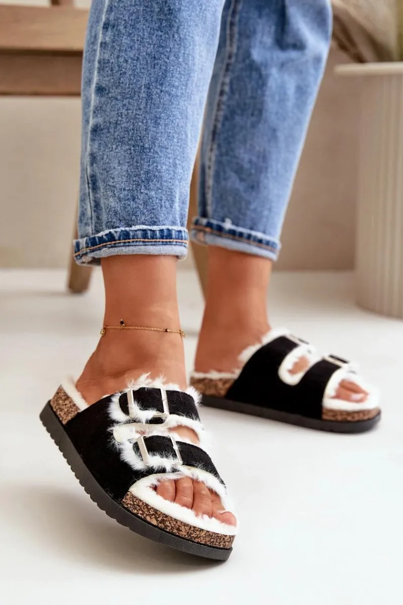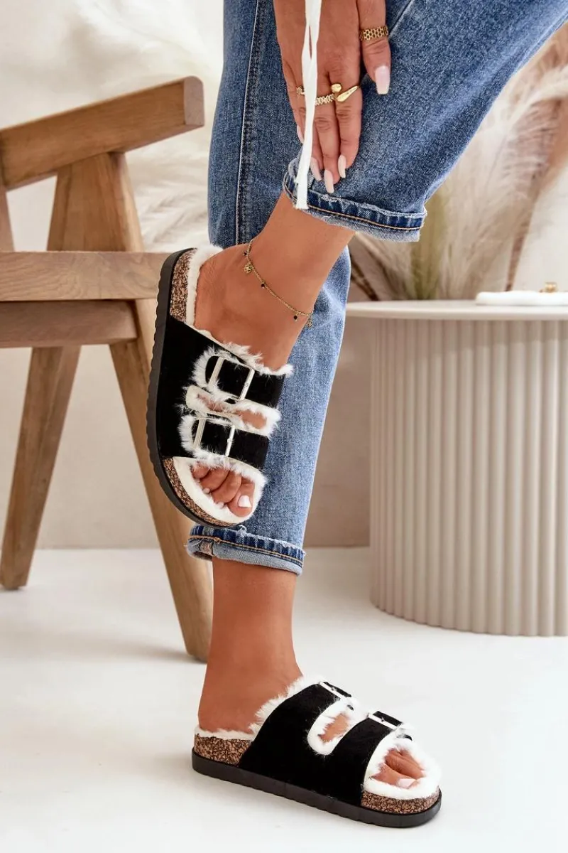 Damskie kapcie ocieplone miękkim futerkiem, zapewniające ciepło i wygodę w chłodniejsze dni. Posiadają dwa regulowane paski z klamrami, które umożliwiają idealne dopasowanie do stopy. Osadzone na platformie, dodają nieco wysokości, jednocześnie zapewniając stabilność i komfort noszenia. Idealne na relaksujące chwile w domu. Przy wyborze rozmiaru prosimy kierować tabelą rozmiarów.