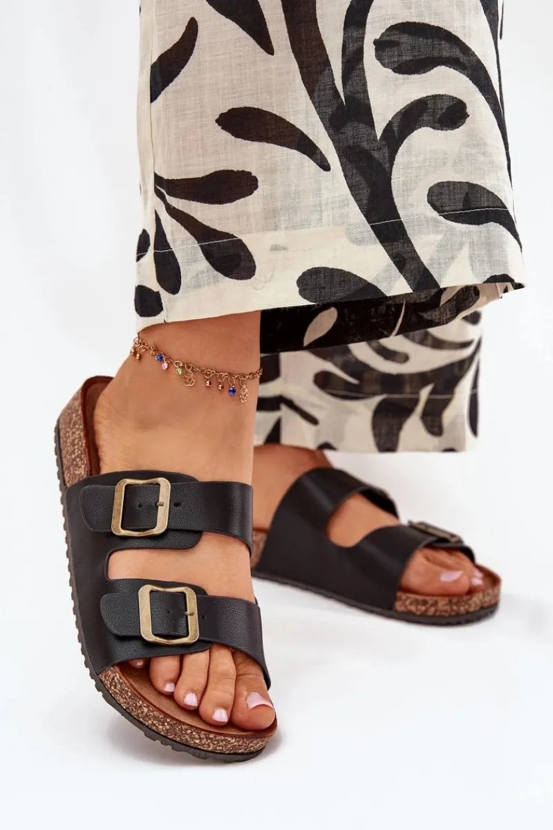 Klapki damskie na korkowej platformie z profilowaną eko zamszową wkładką to połączenie komfortu i modnego wyglądu. Dwa paski z regulowanymi klamrami zapewniają idealne dopasowanie, a ich nowoczesny fason wpisuje się w najnowsze trendy tego sezonu. Doskonałe do letnich stylizacji, świetnie komponują się z sukienkami, spódnicami czy spodniami, dodając każdej kreacji lekkości. Przy wyborze rozmiaru rosimy sugerować się tabelą rozmiarów.