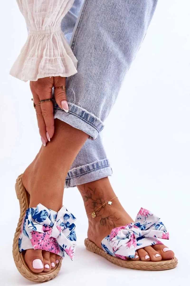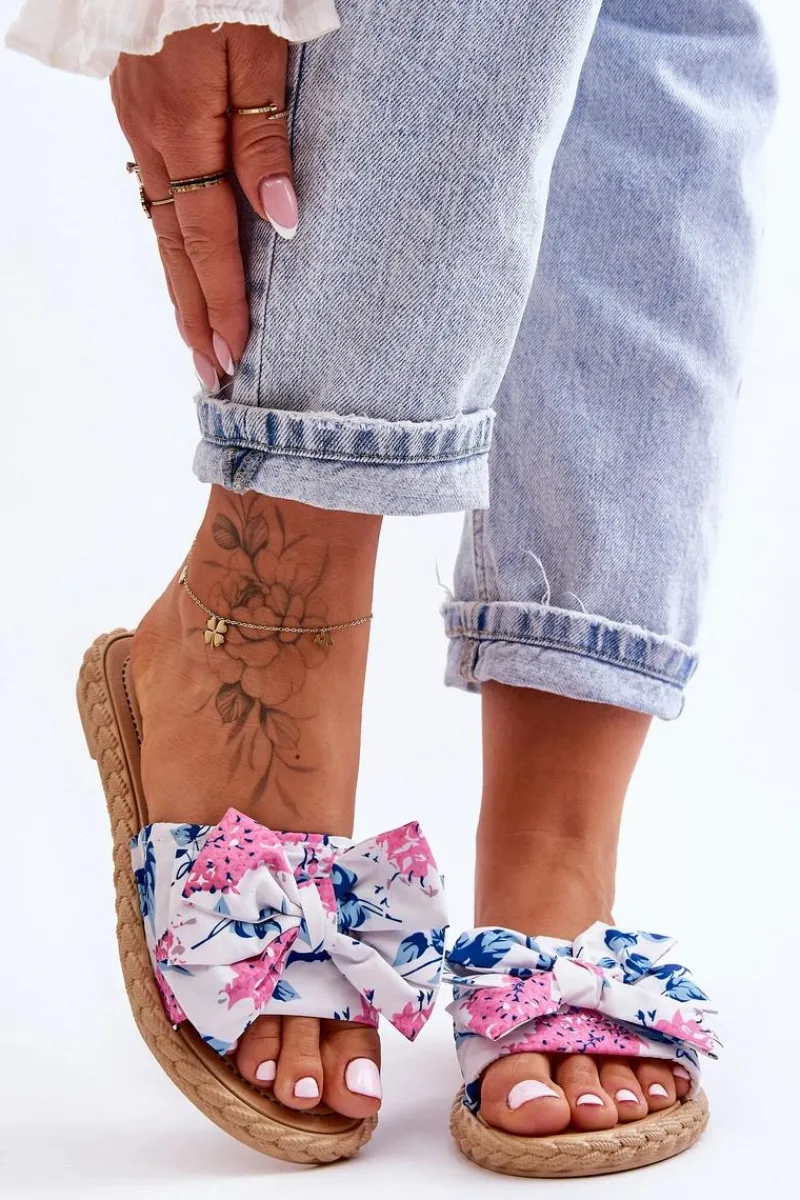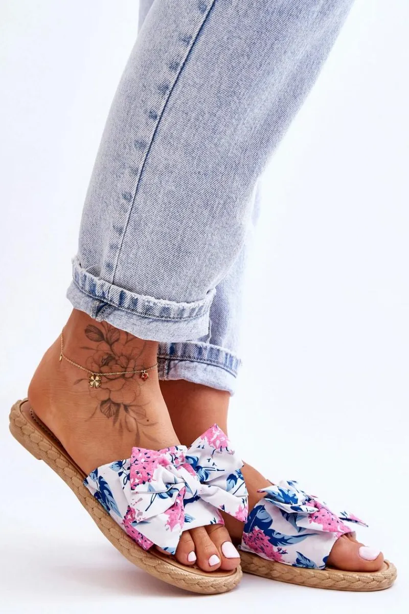 New Damskie Klapki Z Materiałową Kokardą Białe Blossom Damskie Klapki Damskie Klasyczne