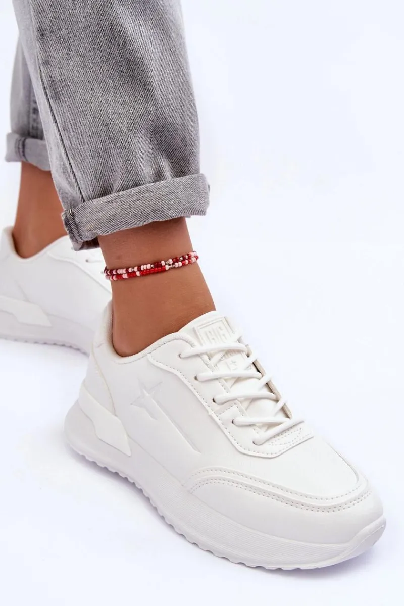 Damskie, klasyczne sneakersy marki Big Star zostały wykonane z odpornych na deszcz materiałów. Osadzone na grubej podeszwie. Model klasycznie sznurowany. Noski zaokrąglone. Gumowa podeszwa zapewni doskonałą amortyzację. Przy wyborze rozmiaru prosimy sugerować się tabelą rozmiarów.