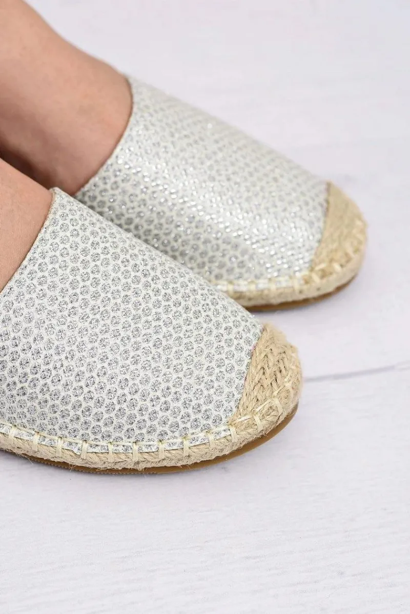 Pięknie mieniące się brokatem espadryle to najwspanialszy model jaki można sobie wyobrazić. Nie dość że są bardzo wygodne to do tego świetnie wyglądają! Podeszwa i nosek zdobione oraz wykonane z lnianego espadrylu co nadaje im jeszcze większego letniego charakteru. Dodatkowego stylu dodaje wiązanie wokół kostki. Pasują zarówno na elegancko jak i do codziennych stylizacji. Najlepsze espadryle tylko na butosklep.pl