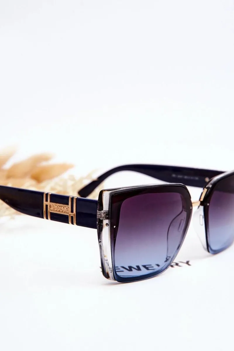 Damskie okulary przeciwsłoneczne zostały wykonane głównie z tworzywa sztucznego. Posiadają zdobienia na zausznikach. Model o fasonie wayfarer świetnie sprawdzi się jako dodatek do codziennych stylizacji w słoneczne dni. Informacja od producenta: ochrona UV 400, kategoria 3.
