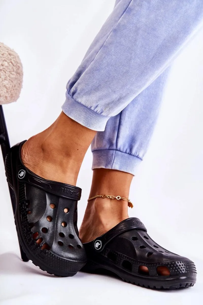 Damskie klapki wykonane z wysokojakościowego, piankowego tworzywa EVA. Profilowana wkładka oraz ruchomy zapiętek zapewnią komfort użytkowania. Przy wyborze rozmiaru prosimy sugerować się tabelą rozmiarów. W zależności od dostawcy klapki posiadają różne guziki – całe czarne lub czarne z logo producenta.