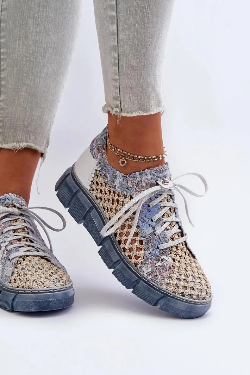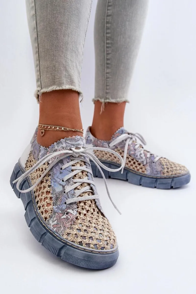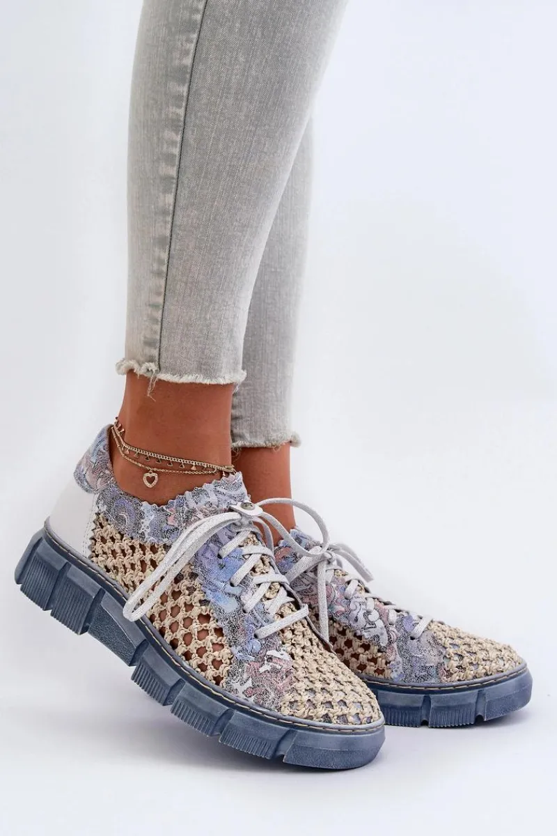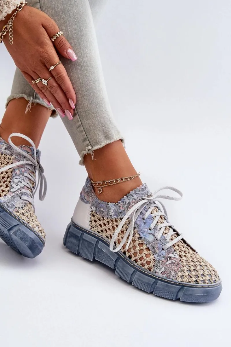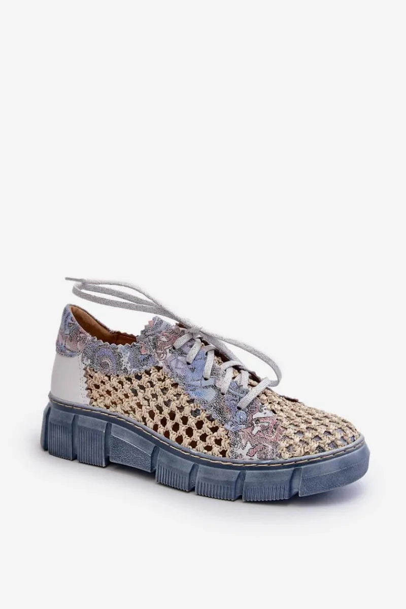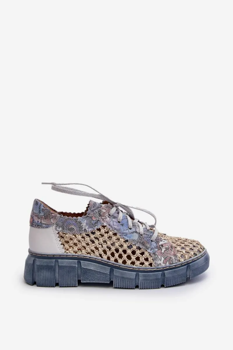 New Damskie Skórzane Półbuty 05850-06 Niebieskie Damskie Półbuty Skórzane