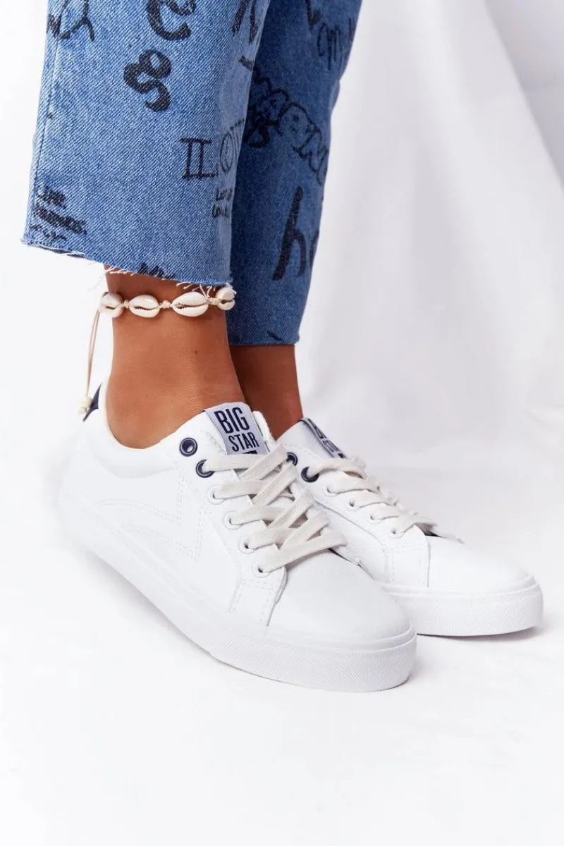 Damskie tenisówki polskiej marki BIG STAR. Klasyczna forma pasuje do wielu stylizacji. Buty dobrze dopasowują się do kształtu stopy, posiadają miękką, materiałową wkładkę. Wykonane są z wysokiej jakości eko skóry. Koniecznie sprawdź całą naszą kolekcję butów BIG STAR. Przy wyborze rozmiaru prosimy sugerować się tabelą rozmiarów.