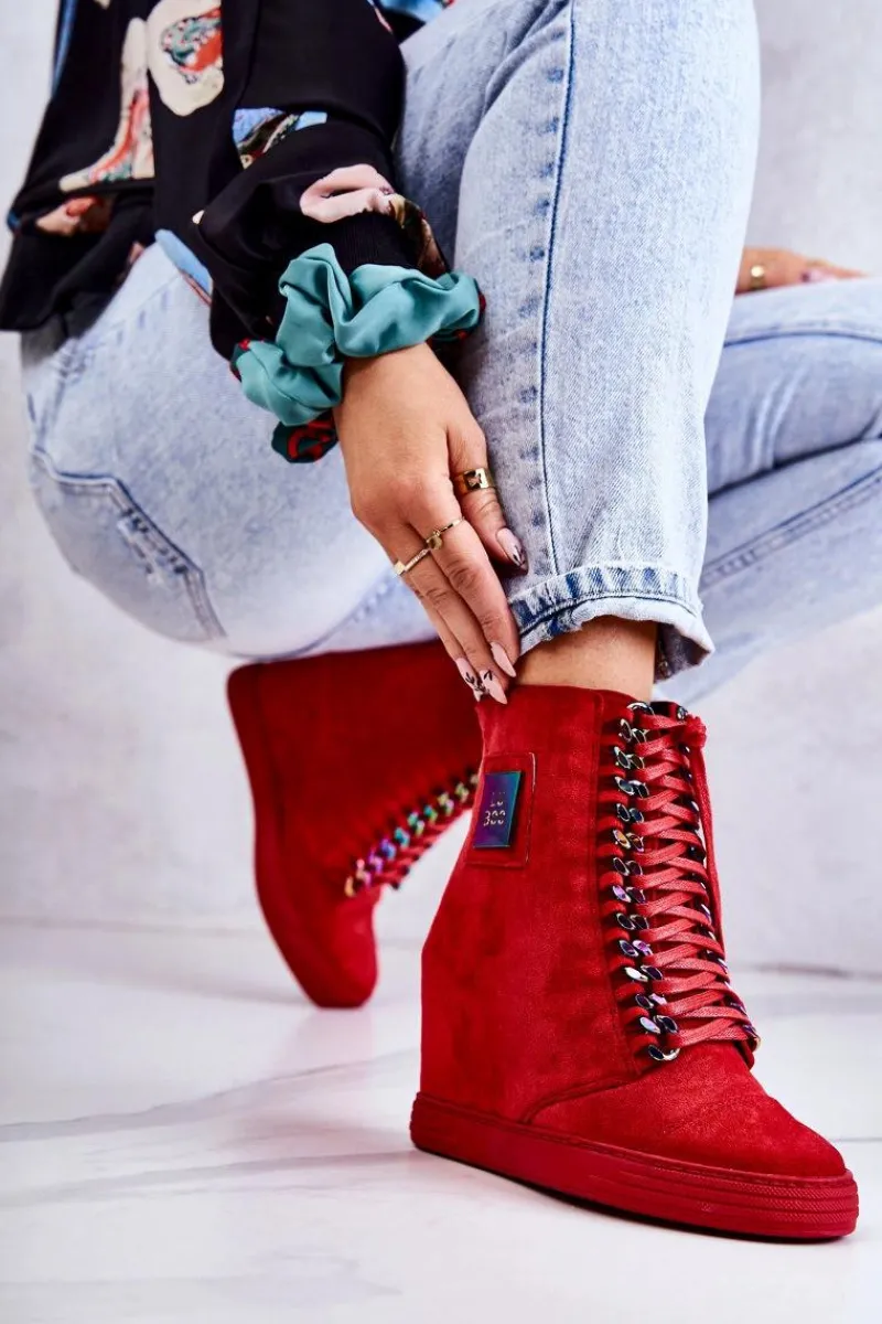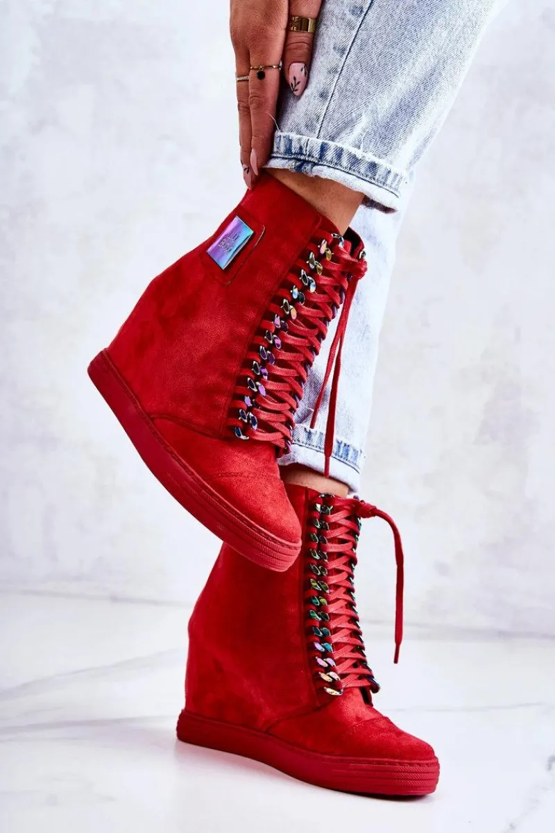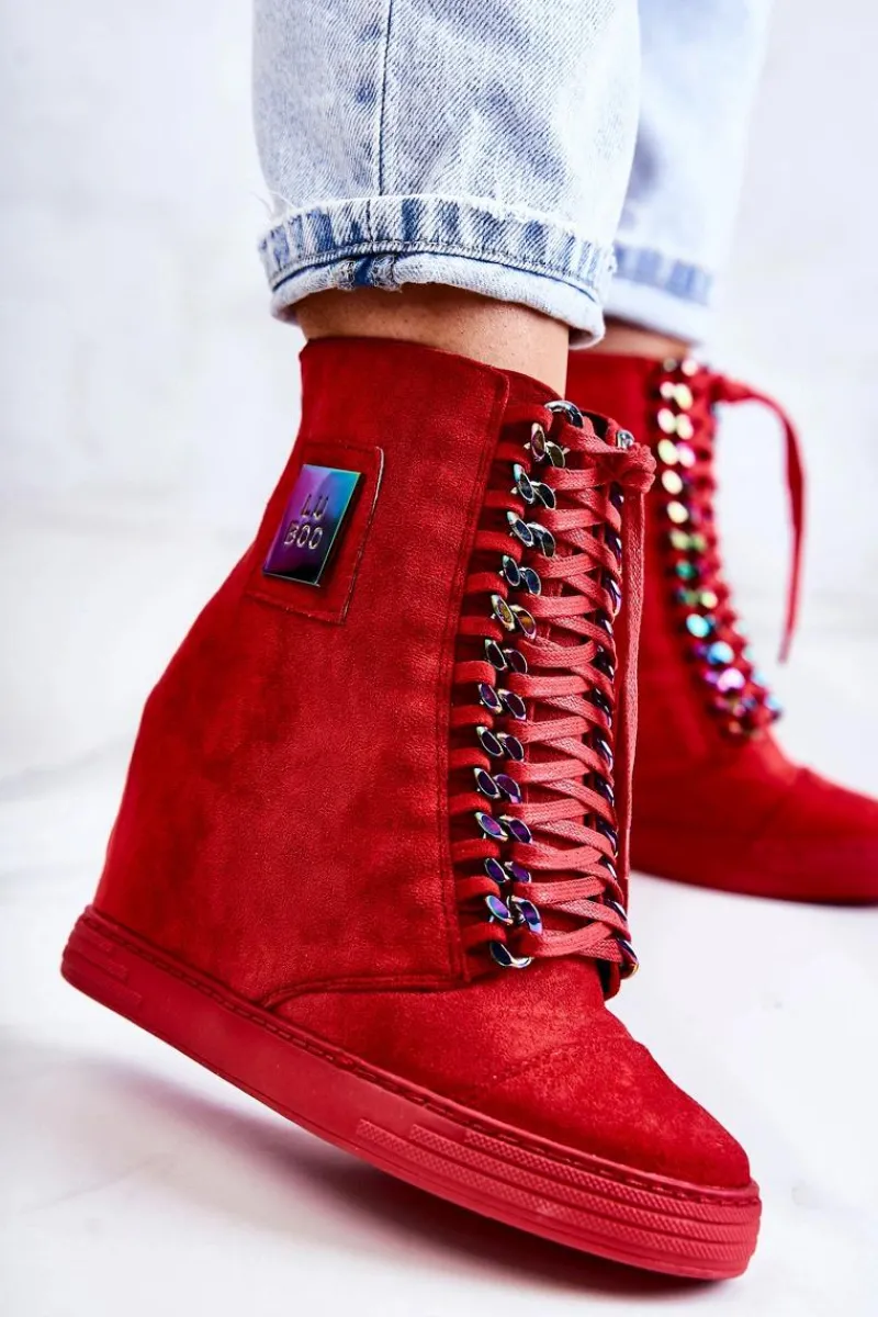 New Damskie Trampki Lu Boo Z Łańcuchami Zamszowe Multi-Czerwone Monica Damskie Trampki Damskie Wysokie