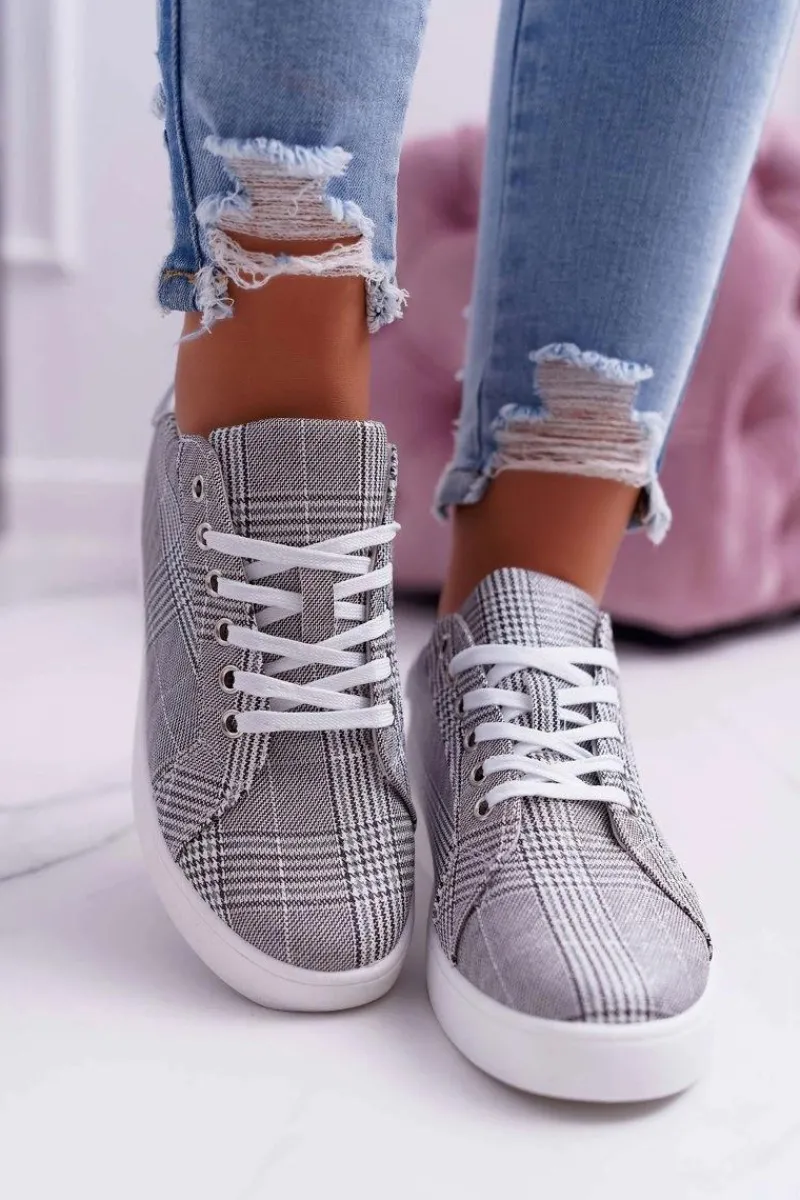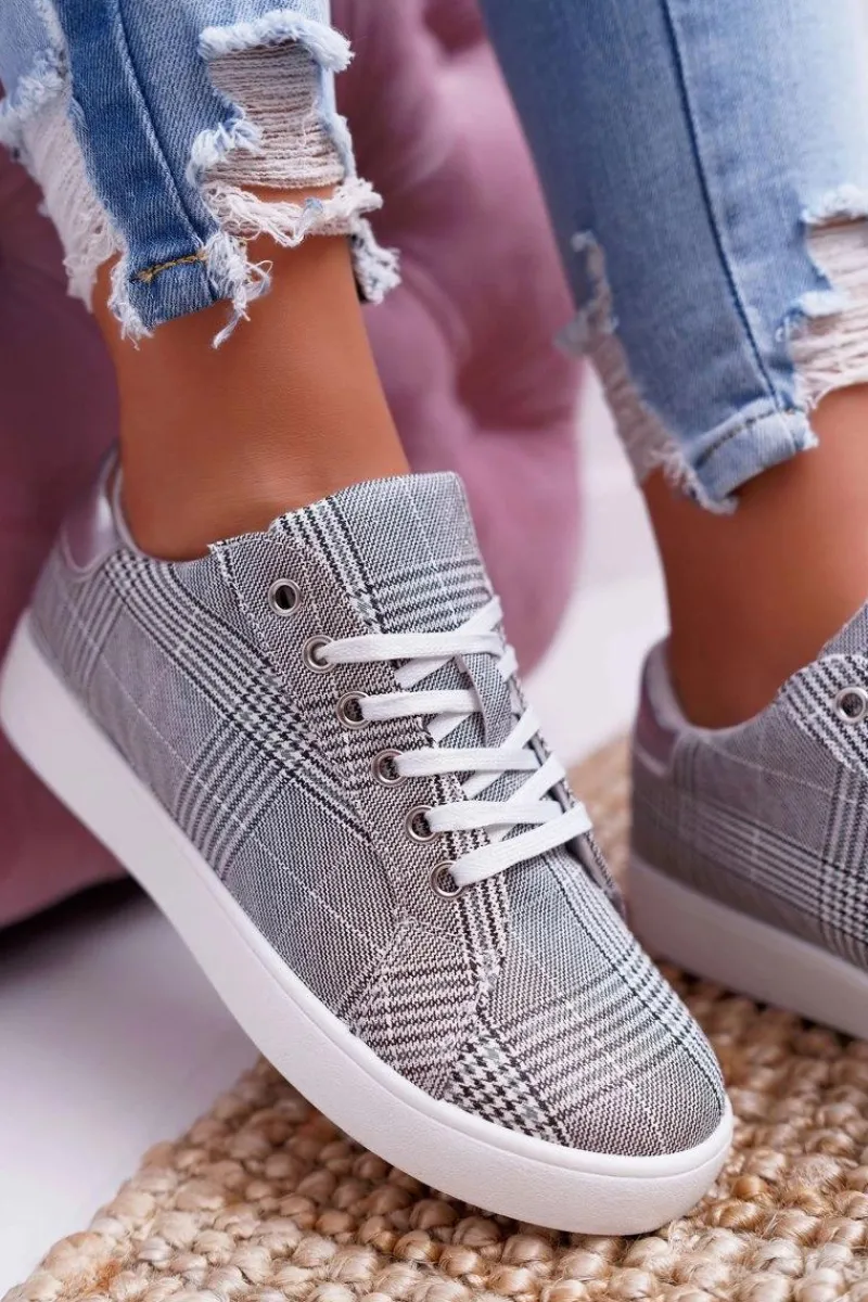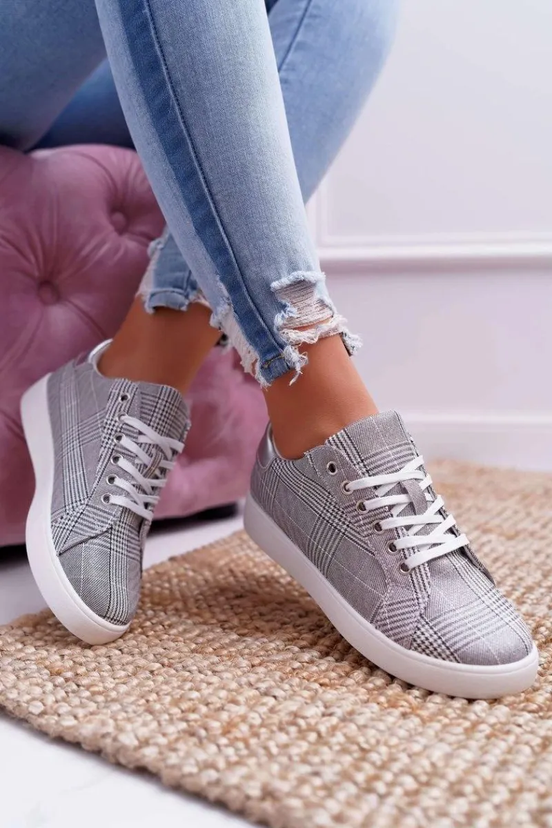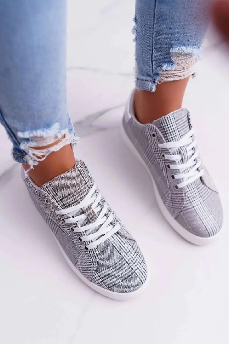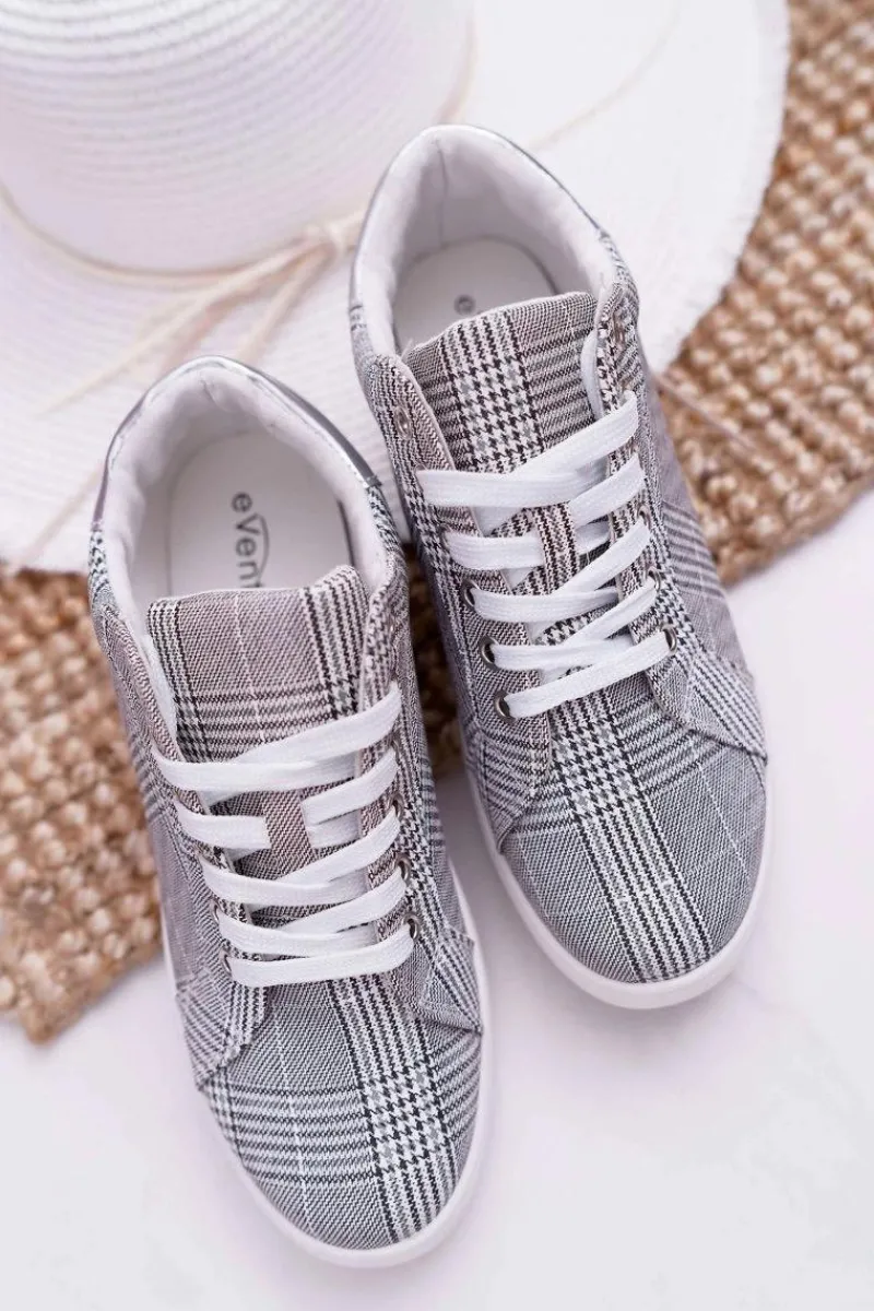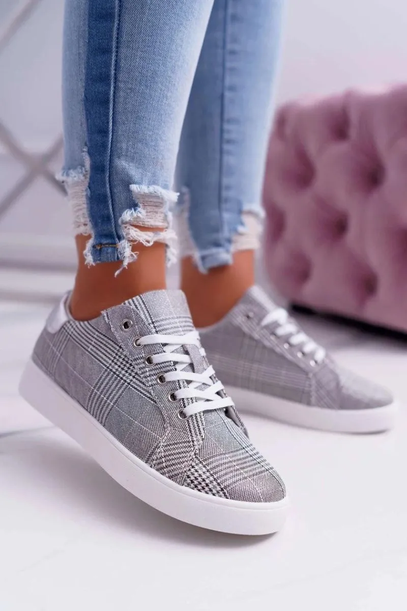 New Damskie Trampki W Kratkę Brokat Szare Bellisa Damskie Trampki Damskie Niskie