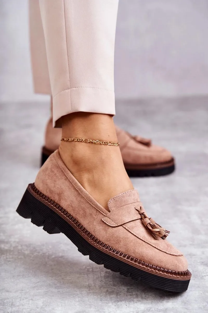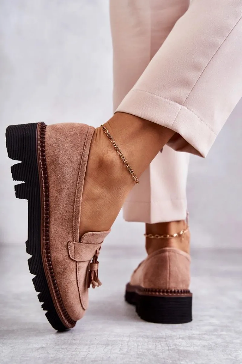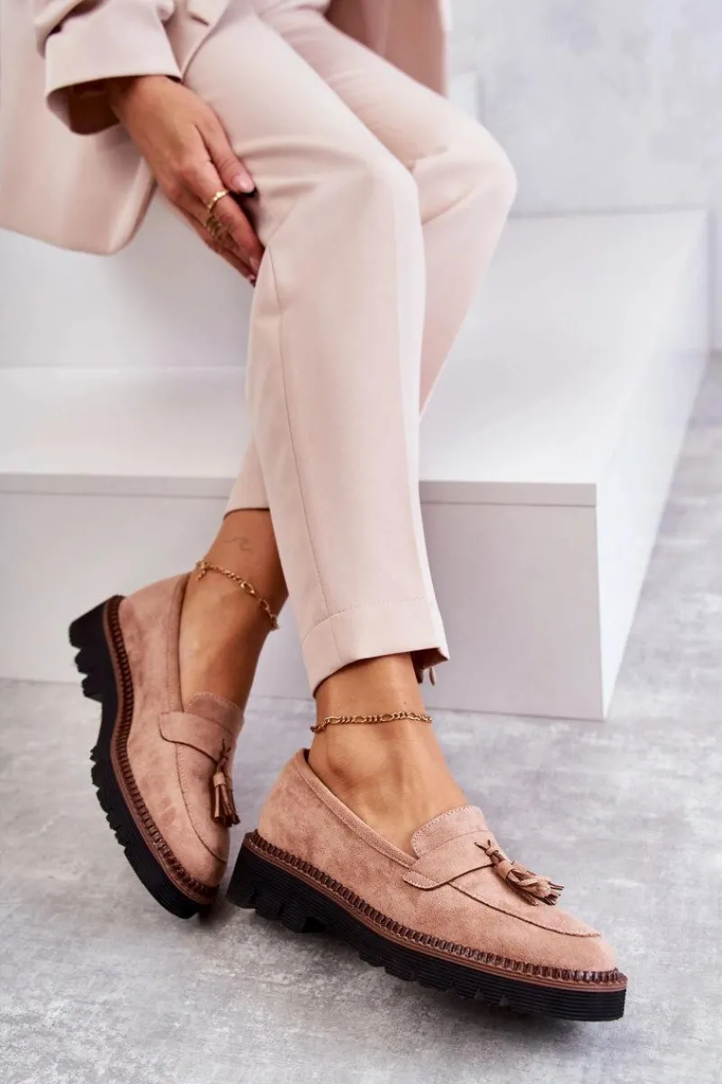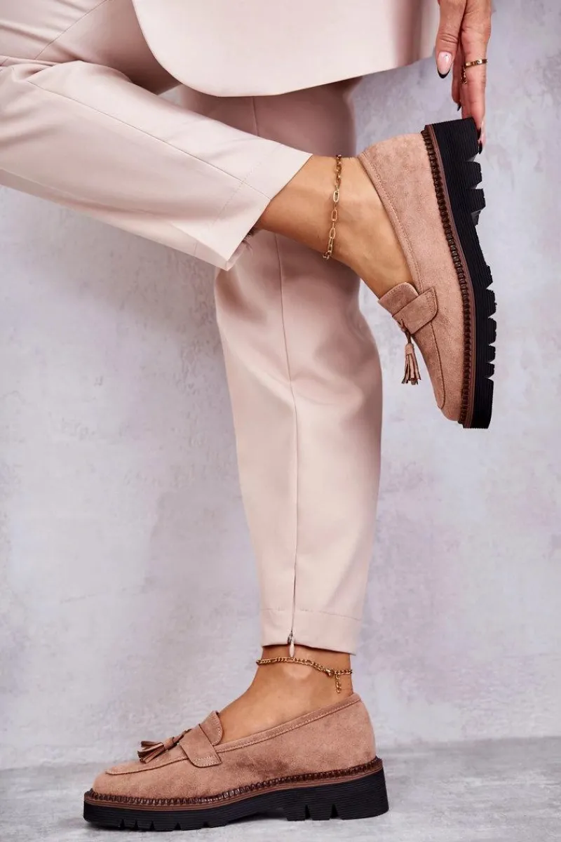 New Damskie Zamszowe Półbuty Na Platformie Beżowe Unni Damskie Mokasyny Damskie Zamszowe