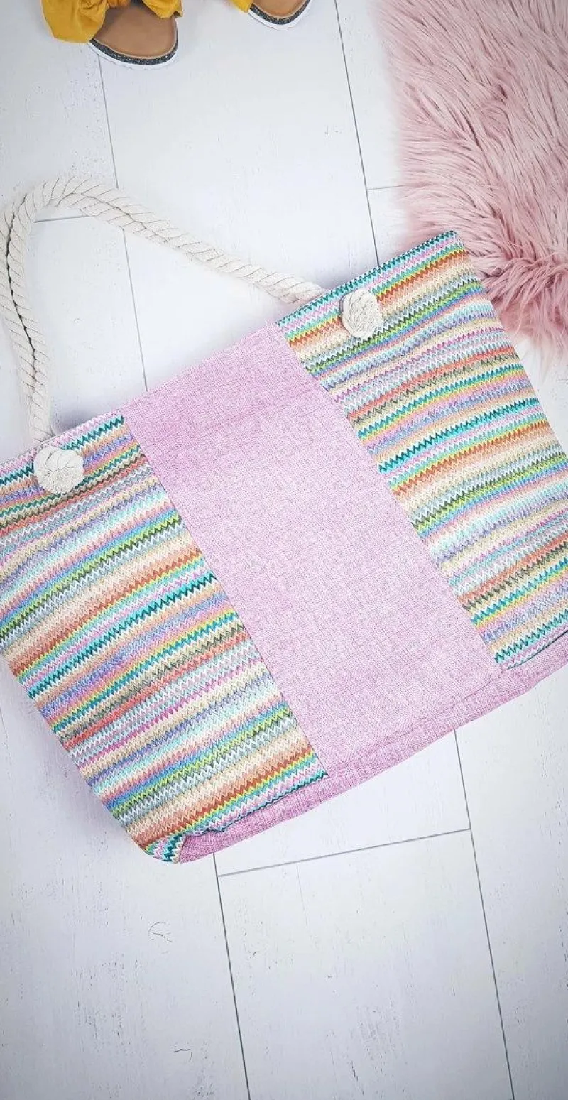 New Duża Plażowa Torebka Worek ze Sznurem Różowa Torebki Plażowe