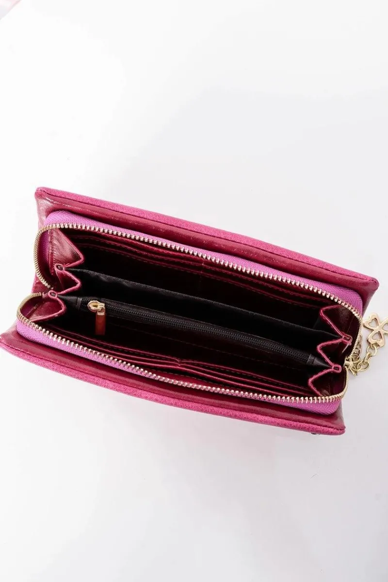Przedstawiamy piękny portfel dla eleganckich Pań. Produkt ten charakteryzuje wyjątkowy szyk. Wykonywane są przy użyciu tylko najwyższej klasy materiałów, które podkreślają światowy i wielkomiejski styl. Staranne i piękne wykończenie każdego portfela oddaje niesamowitą dbałość o detale oraz modowy gust. Portfel posiada zapinanie na zamek, trzy duże kieszonki, jedną małą zapinaną na zamek oraz 8 przegródek na karty. Pięknym dodatkiem jest złoty brelok na zamku.
