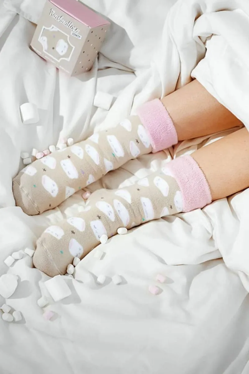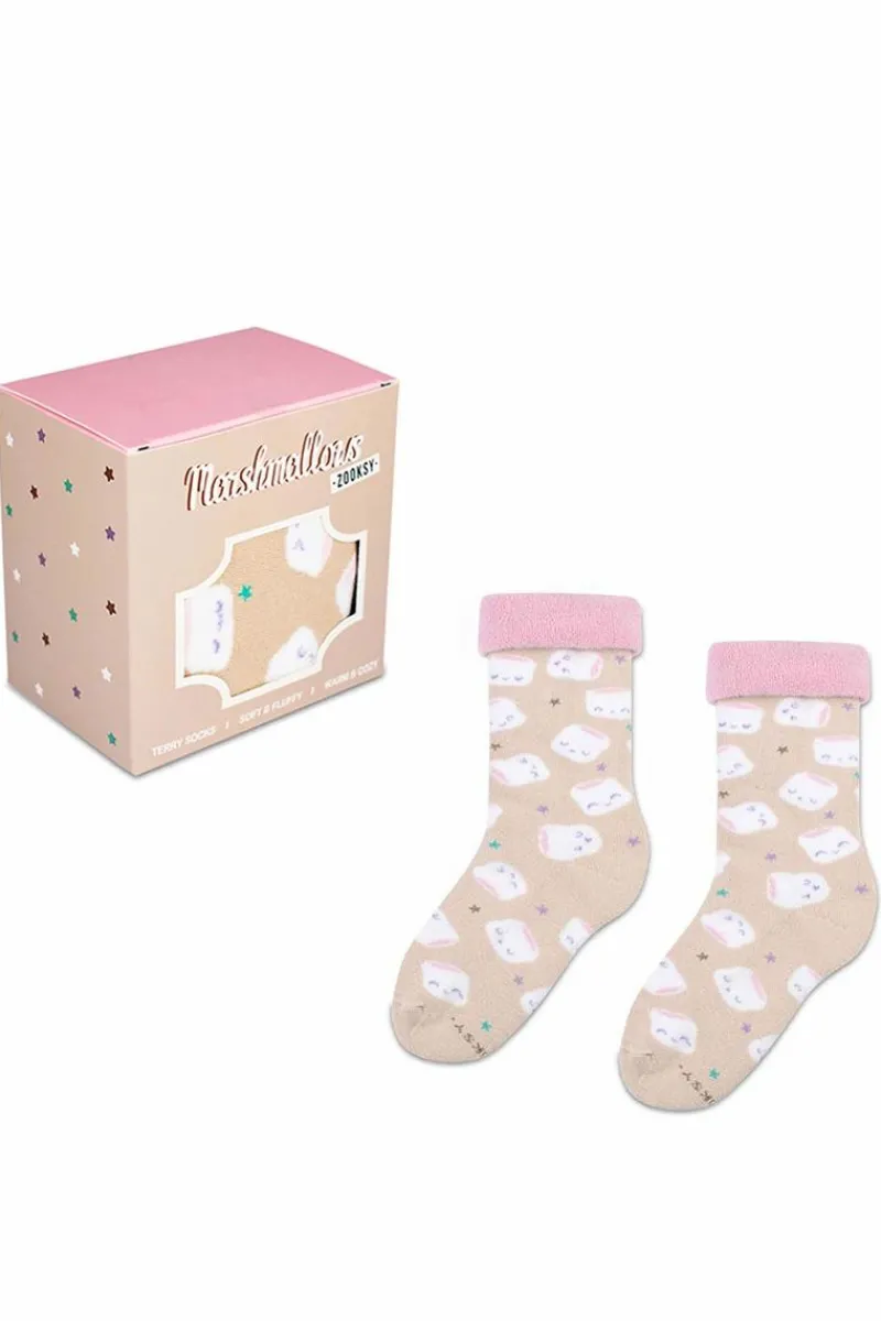 Pianki marshmallows wskoczyły na nasze kolorowe skarpetki i ułożyły się w słodki wzór przepleciony gwiazdkami. Twój brzdąc poczuje w nich takie ciepło, jakby właśnie siedział przy ognisku pod gołym niebem. Skarpetki wykonane głównie z bawełny. Idealne na prezent dla Twojej pociechy! Kup je, zanim znikną!