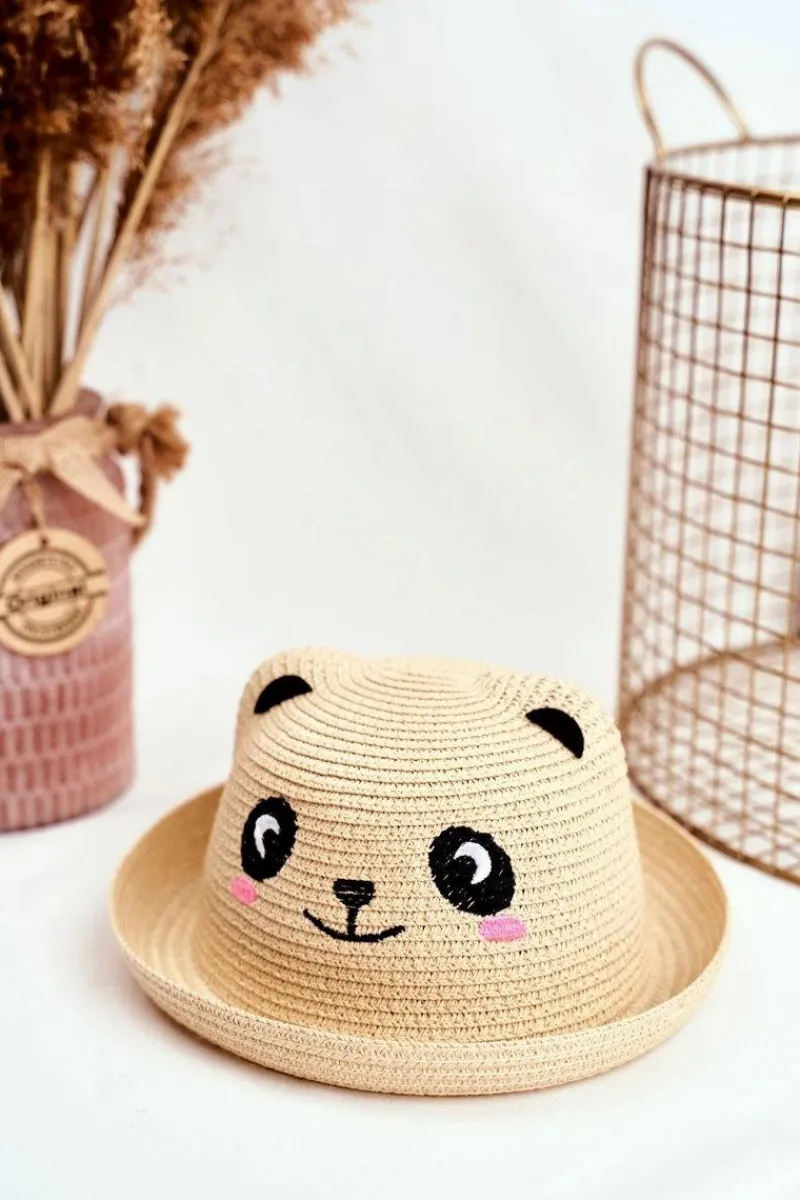 New Dziecięcy Kapelusz Na Lato Plażę Beżowy z Pandą Okrycia Głowy