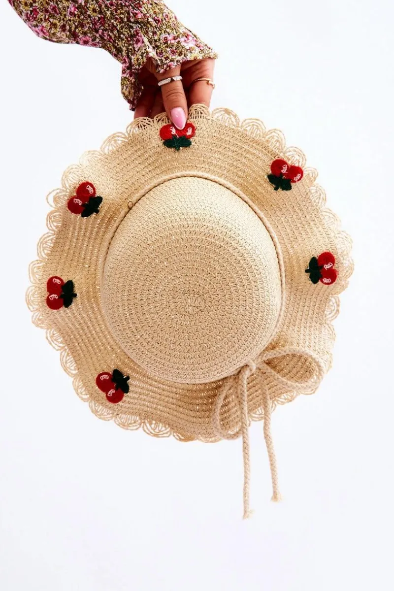 New Dziecięcy Kapelusz Z Wisienkami Beżowy Okrycia Głowy