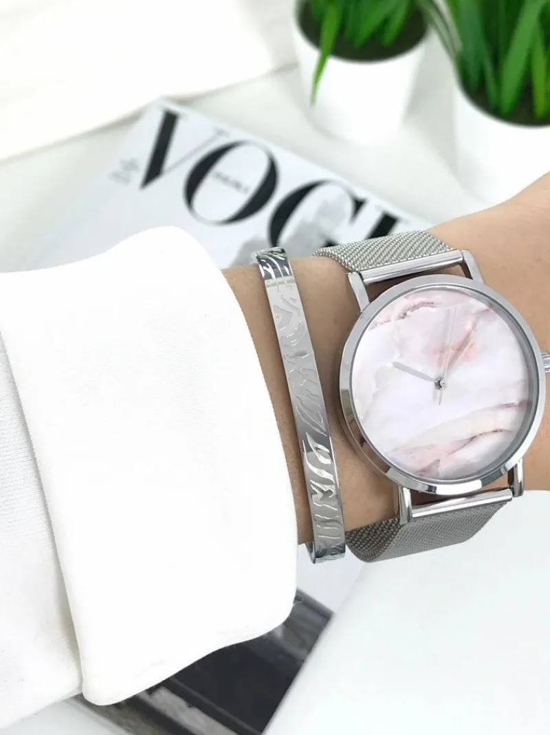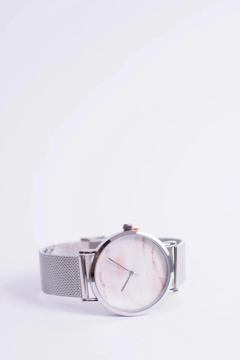 Zegarek Sophie marki Ernest to gratka stworzona z myślą o kobietach kochających gustowne dodatki do swoich stylizacji. Zegarek posiada płaskie szkiełko, które w połączeniu z piękną białą marmurkową tarczą nadaje mu niecodziennego wyglądu. Bransoleta typu mesh, wykonana ze stali chirurgicznej z możliwością łatwej i szybkiej regulacji. Wysoka jakość wykonania mechanizmu i koperty.