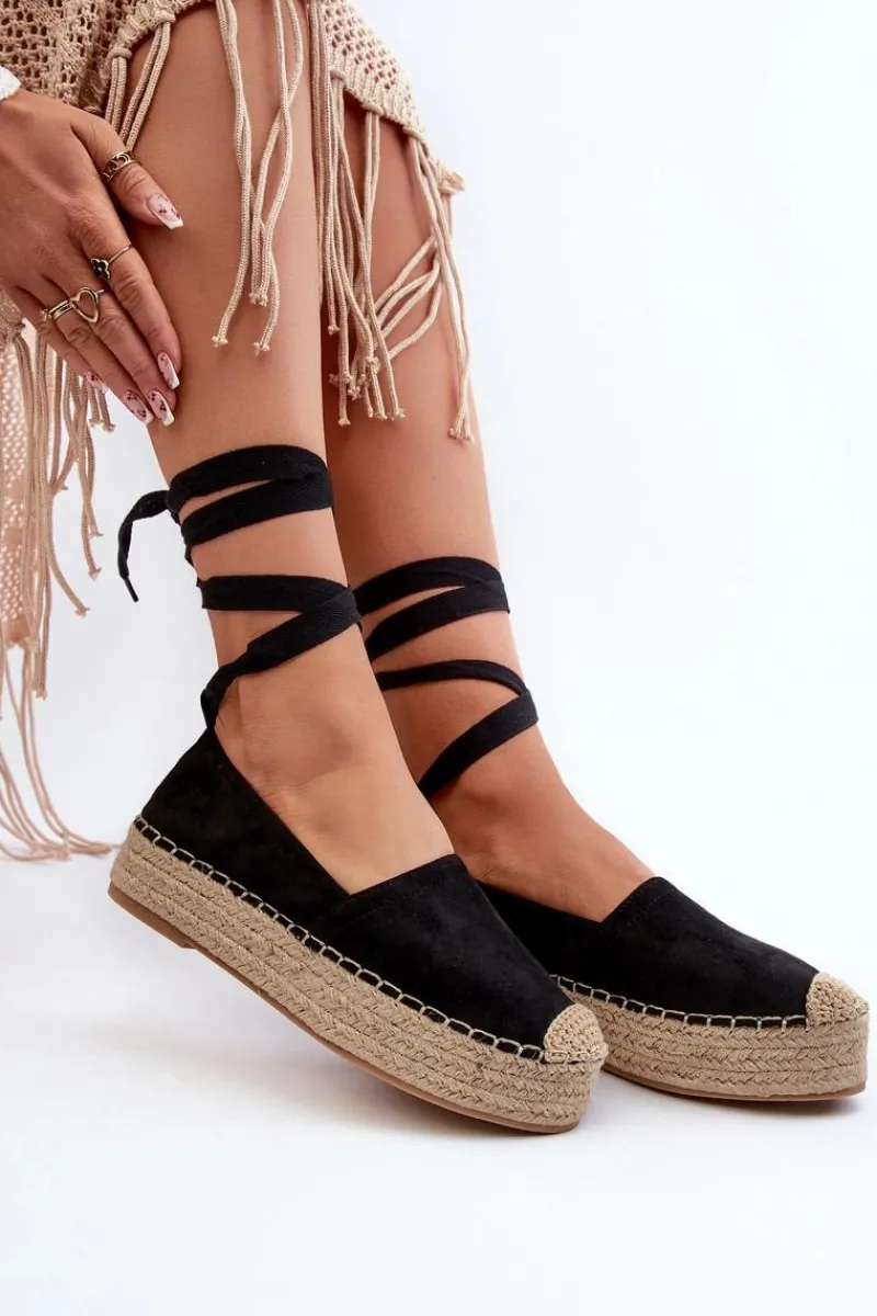Espadryle damskie osadzone na platformie z plecionką. Wiązanie zapewnia precyzyjne dopasowanie, natomiast plecionka dodaje im subtelnego uroku. To obuwie, które nie tylko prezentuje się modnie, ale również zapewnia komfort i pewność kroku podczas letnich aktywności. Przy wyborze rozmiaru prosimy sugerować się tabelą rozmiarów.