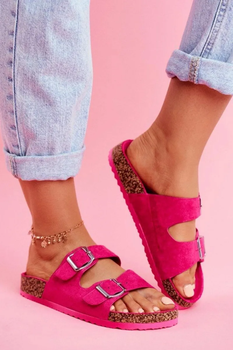 New Evento Damskie Klapki Na Korku Z Klamrami Fuksja Si Senor Różowy