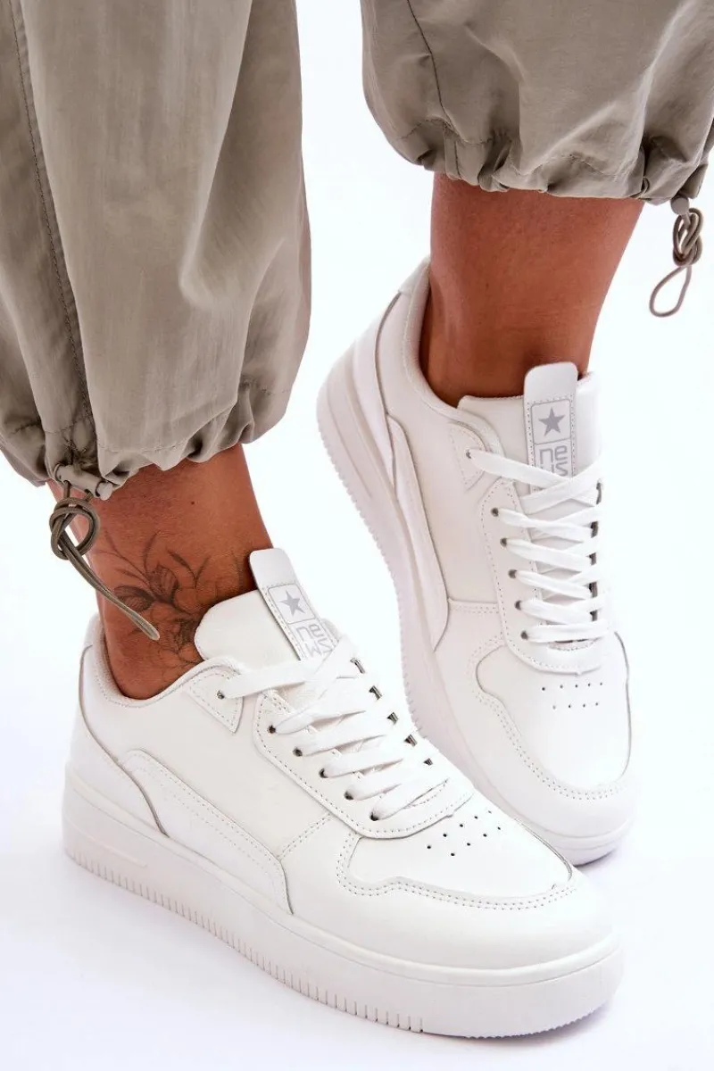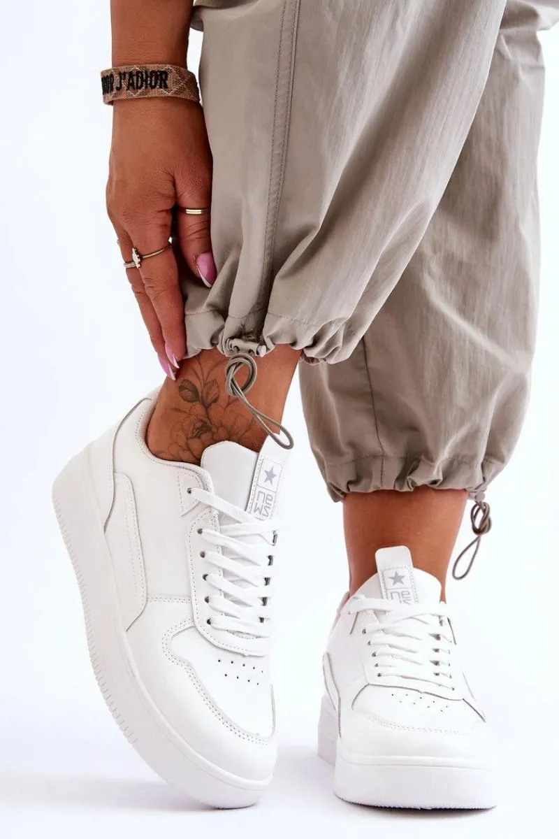 Klasyczne, ponadczasowe buty sportowe. Zostały wykonane z wysokiej jakości eko skóry. Model ten posiada sznurowanie. Z przodu posiadają delikatną perforację. Wkładka została wykonana z materiału. Buty te osadzono na platformie. Koniecznie powinnaś je mieć! Przy wyborze rozmiaru prosimy kierować się tabelą rozmiarów.