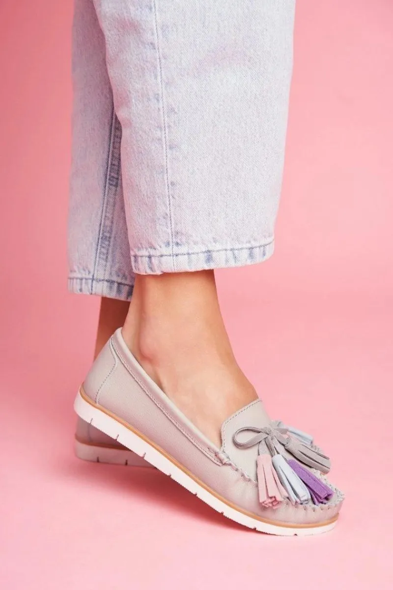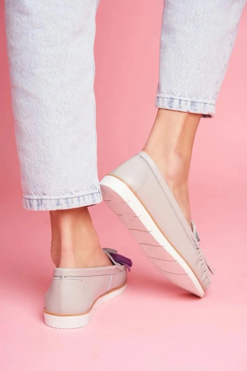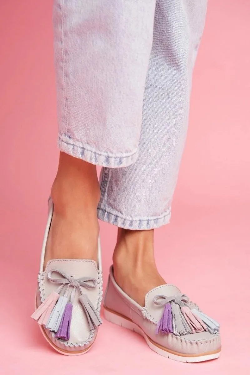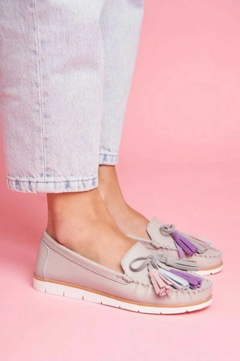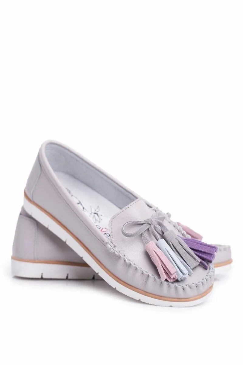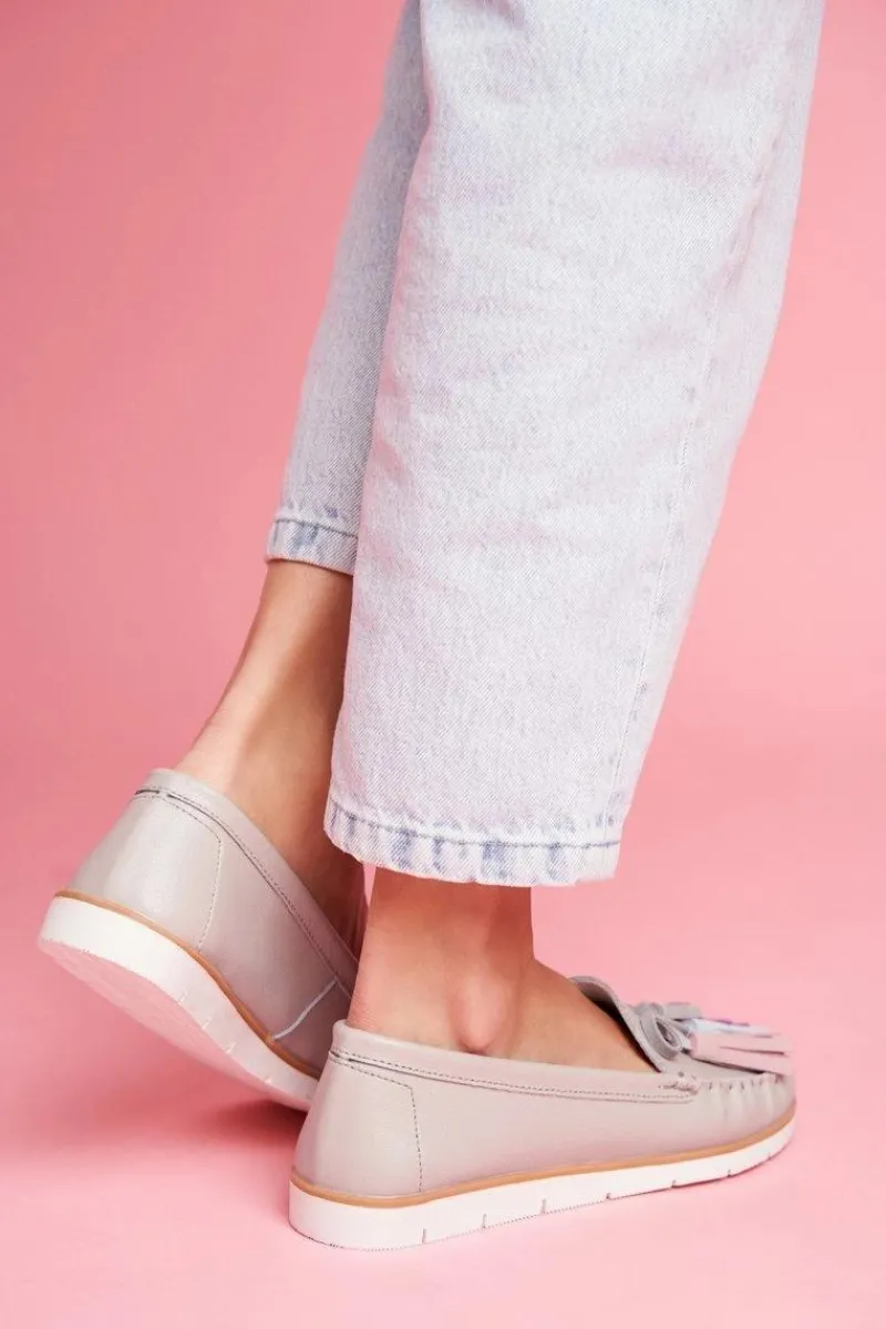 New Evento Mokasyny Damskie Skórzane Szare Bebbo