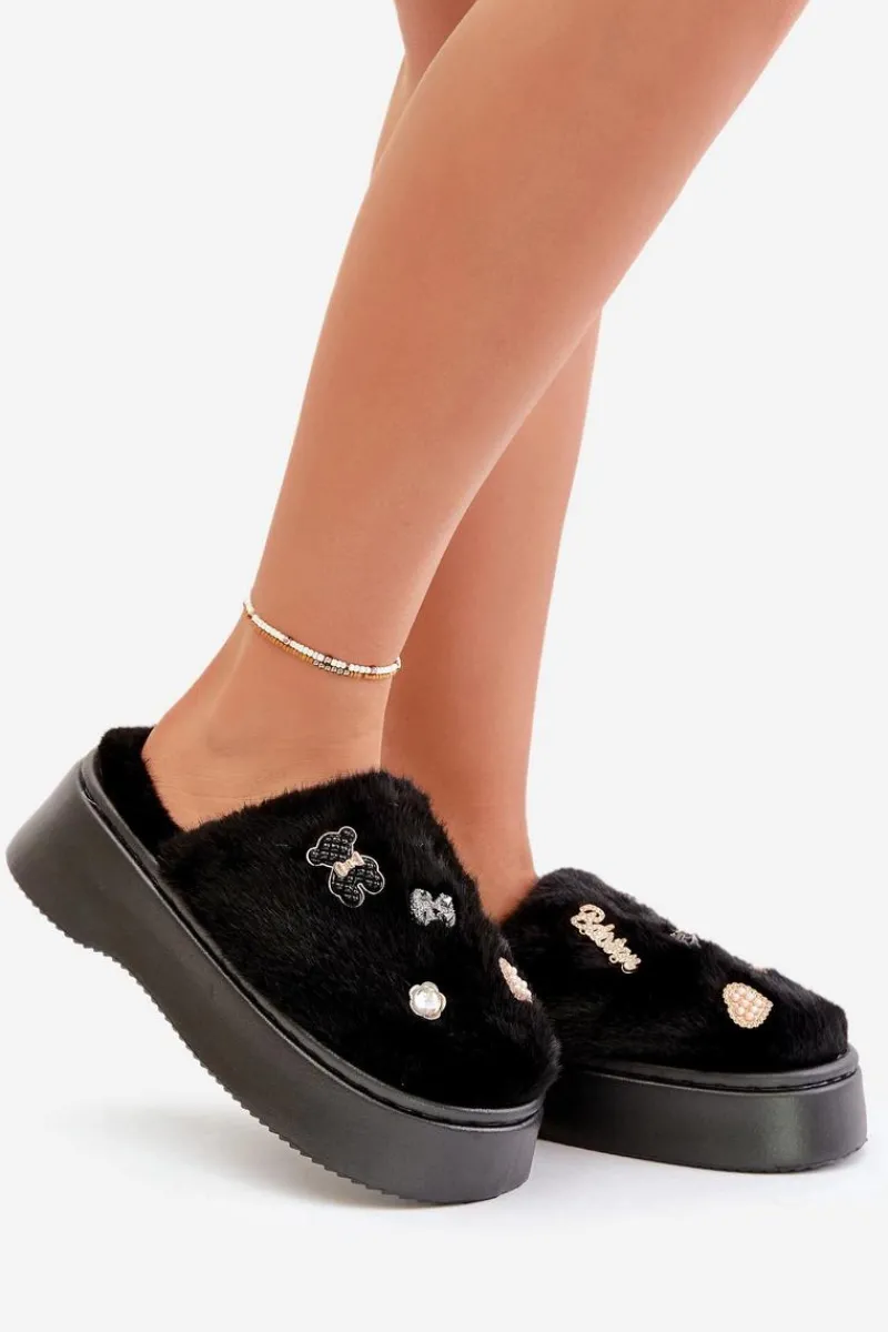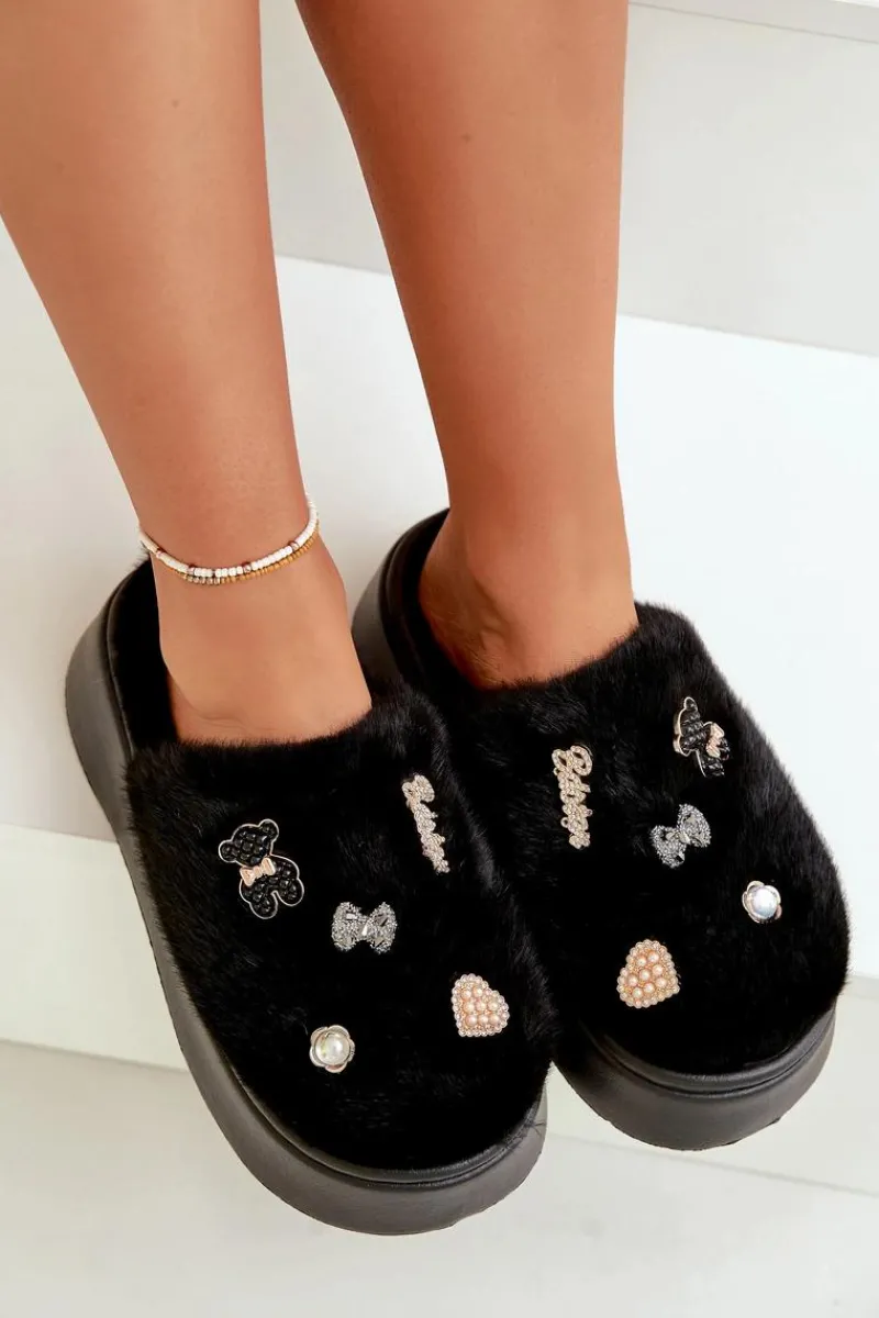 Futrzane kapcie damskie na grubej podeszwie to idealne połączenie stylu i komfortu. Wykonane z miękkiego, przytulnego futerka, zapewniają ciepło i wygodę na chłodne dni. Zakryte noski dodatkowo chronią stopy przed zimnem, a urocze przypinki dodają im wyjątkowego, modnego charakteru. Doskonałe zarówno do domowego relaksu, jak i na szybkie wyjścia na zewnątrz. Przy wyborze rozmiaru prosimy sugerować się tabelą rozmiarów.