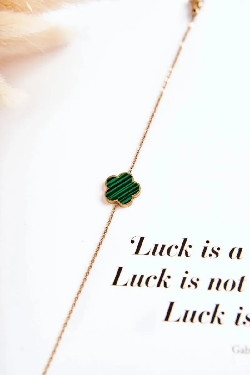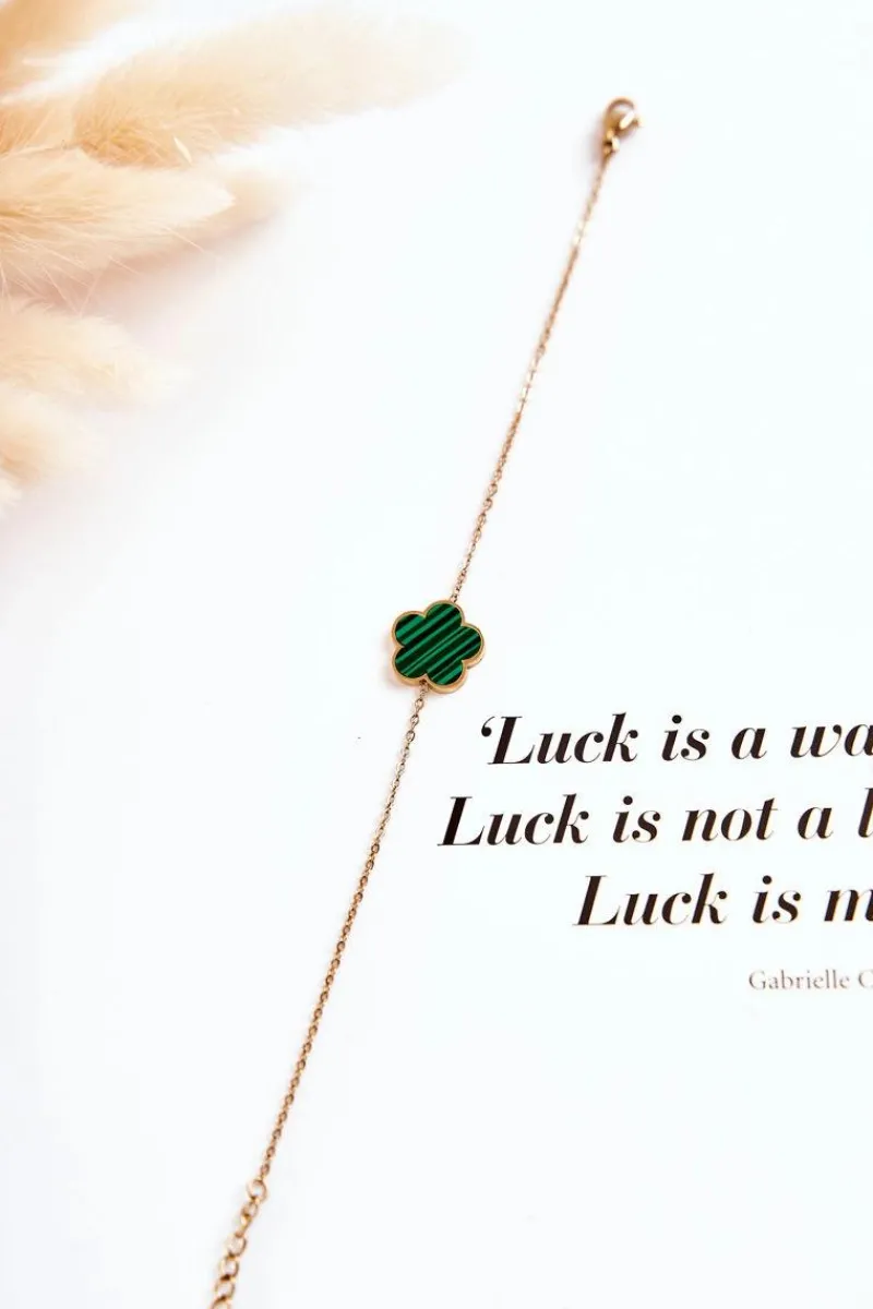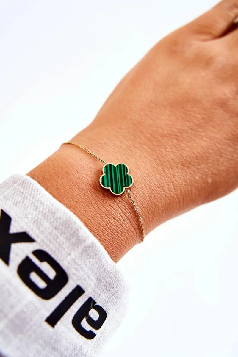 New Glam Chic Damska Modna Bransoletka Z Zielono-Czarnym Kwiatem Złota
