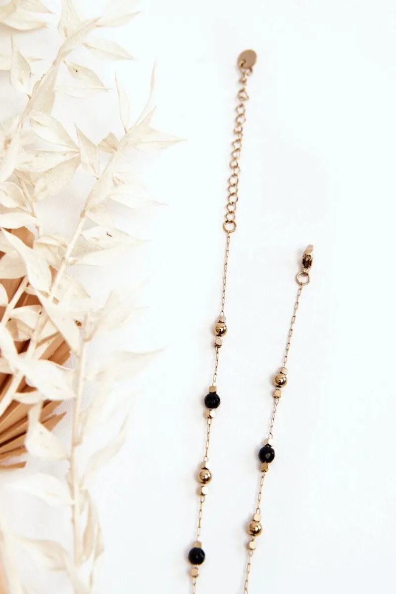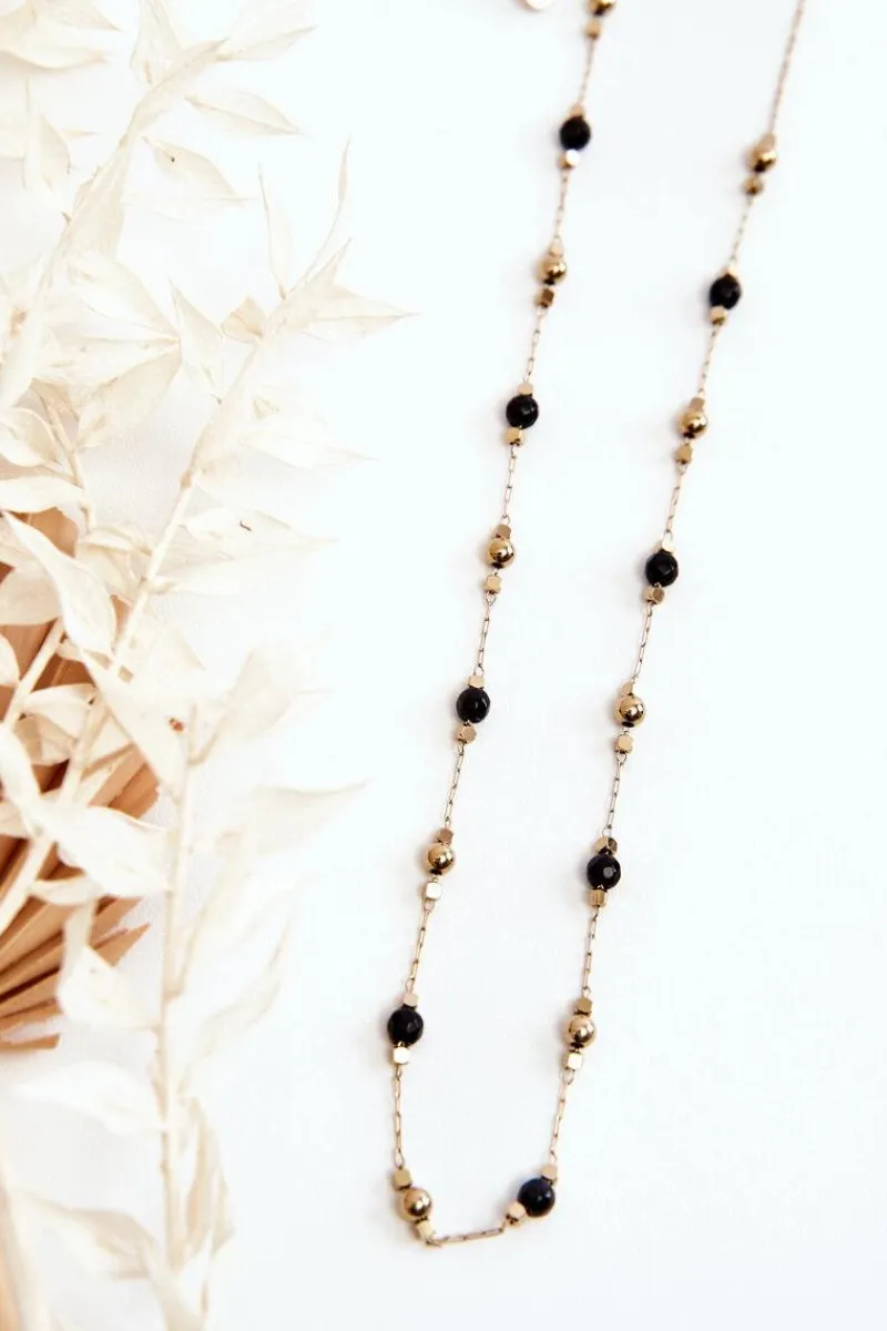 New Glam Chic Damski Naszyjnik Z Czarnymi Koralikami Złoty