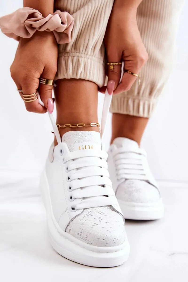 Świetne sneakersy wykonane z wysokiej jakości eko skóry. Ten modny fason idealnie będzie komponował się z codziennymi stylizacjami. Klasycznie wiązany model. Miękka, eko skórzana wkładka sprawi, że będziesz czuć się w nich komfortowo przez cały dzień. Delikatna platforma uniesie Twoją sylwetkę. Przy wyborze rozmiaru prosimy sugerować się tabelą rozmiarów.