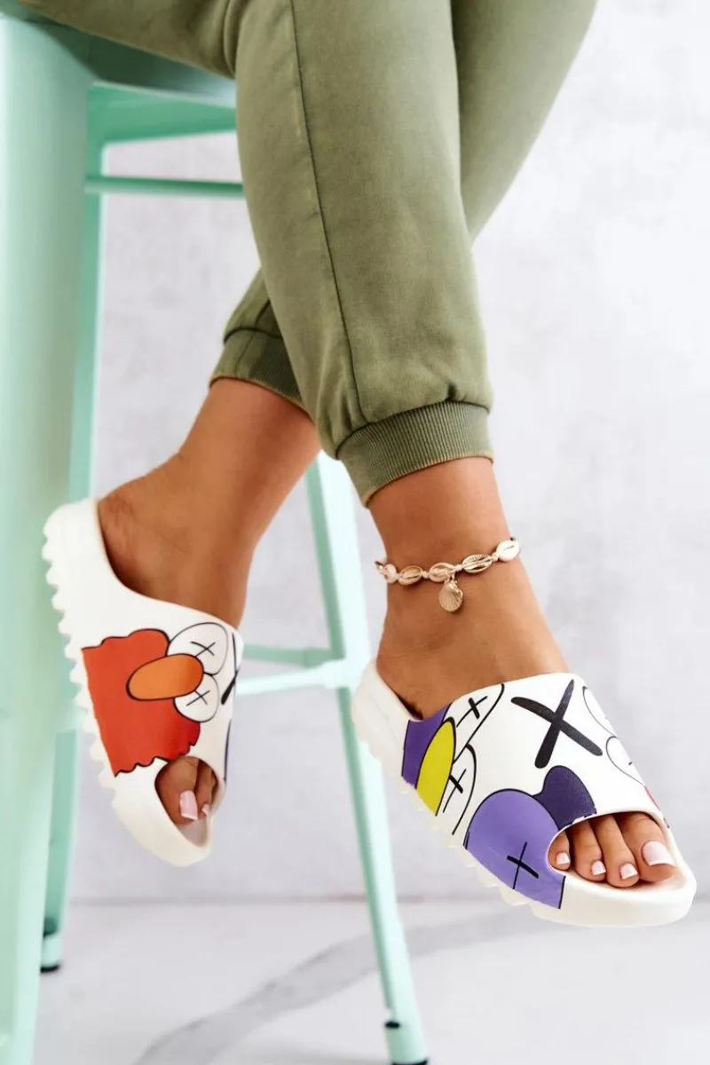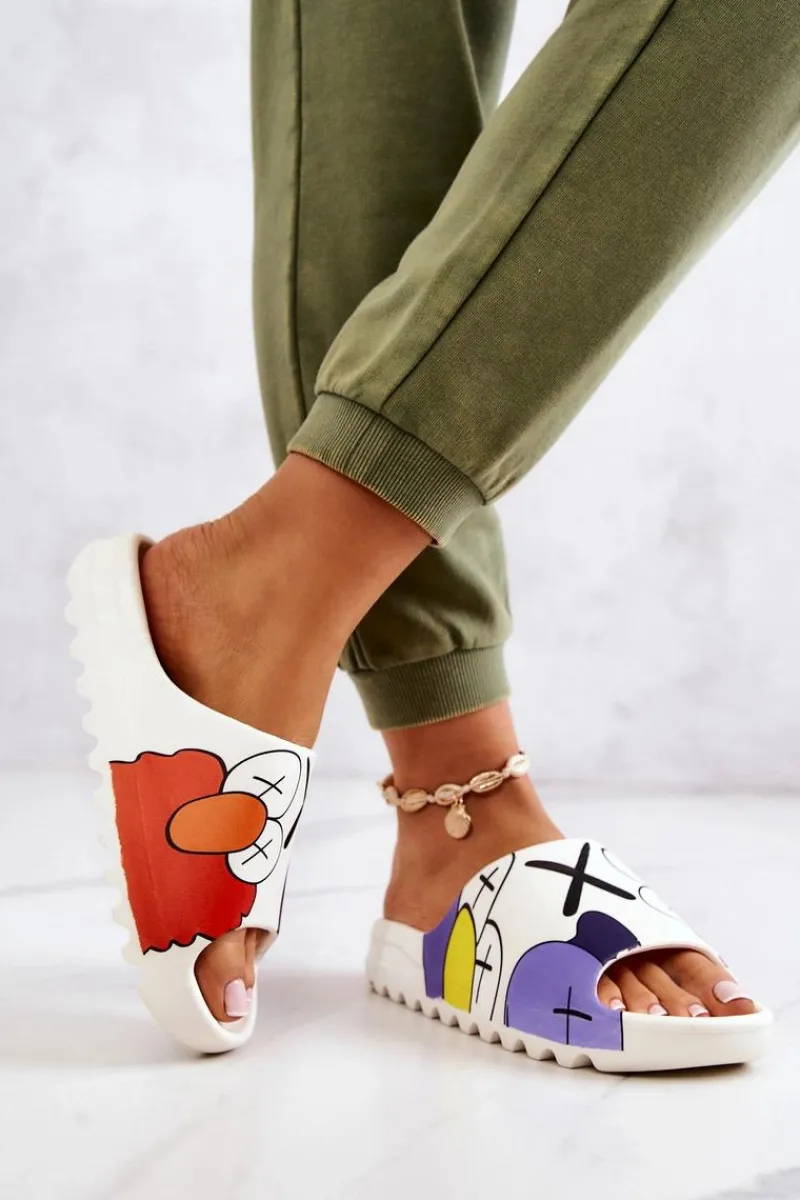 Świetne klapki w kreskówkowy print! Klapki, które możesz używać także zamiast papci! Wykonane z gumowego tworzywa. Buty posiadają delikatnie profilowaną wkładkę. Grubsza podeszwa chroni przed nierównym podłożem. Ciekawy model, którym zaskoczysz wszystkich! Musisz go mieć! Przy wyborze rozmiaru prosimy sugerować się tabelą rozmiarów.