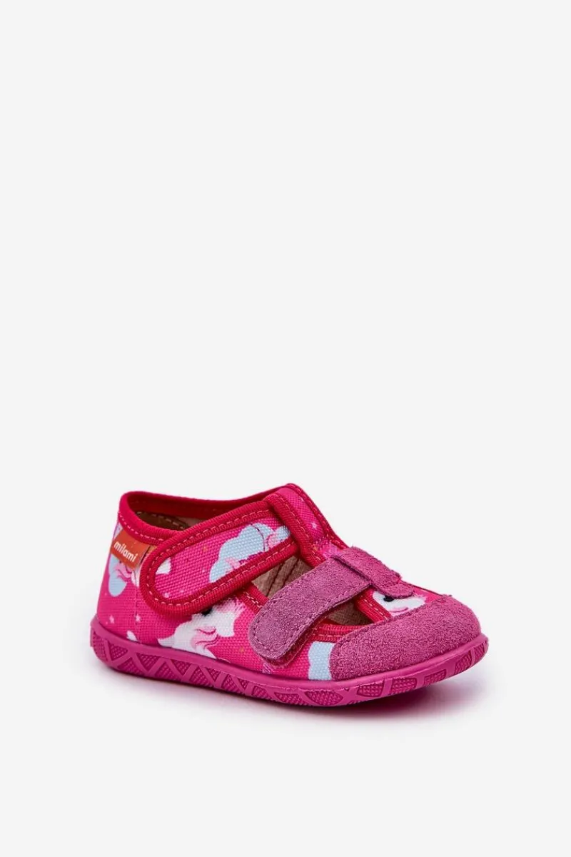 New Kapcie Dziecięce Na Rzepy W Jednorożce Fuksja Reathiana Dzieci Dziewczęce|Back To School