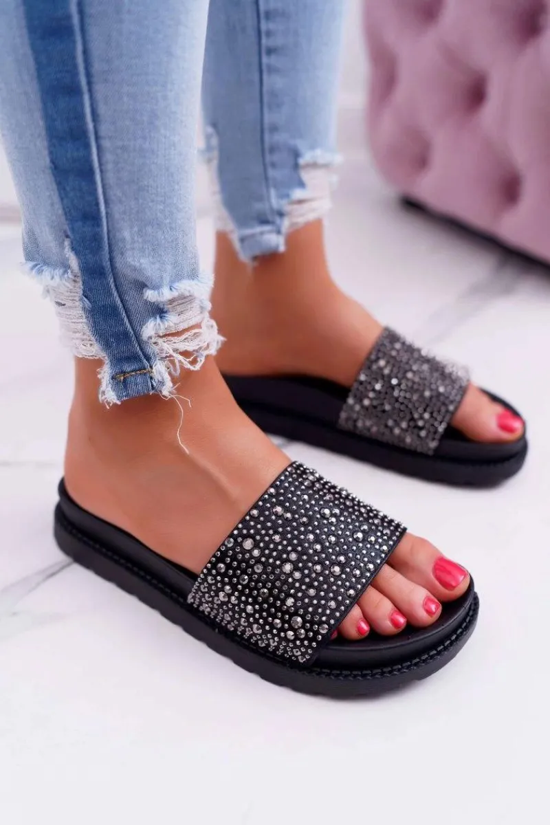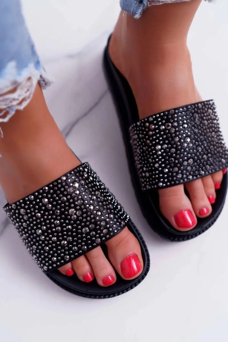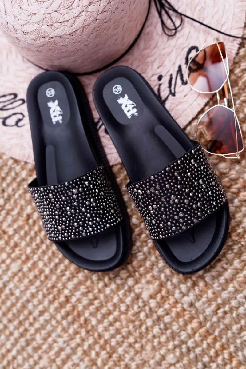 New Klapki Damskie Z Cyrkoniami Czarne XTI 48821 Damskie Klapki Damskie Klasyczne