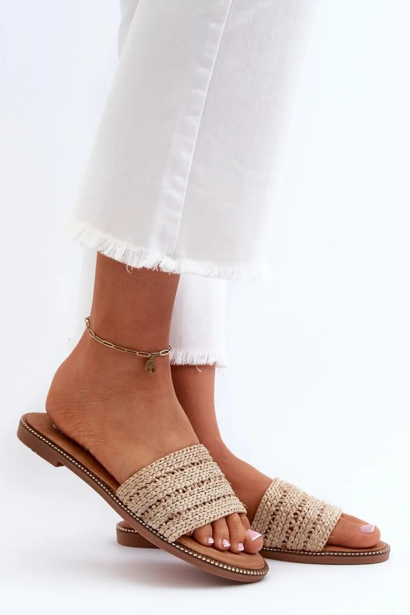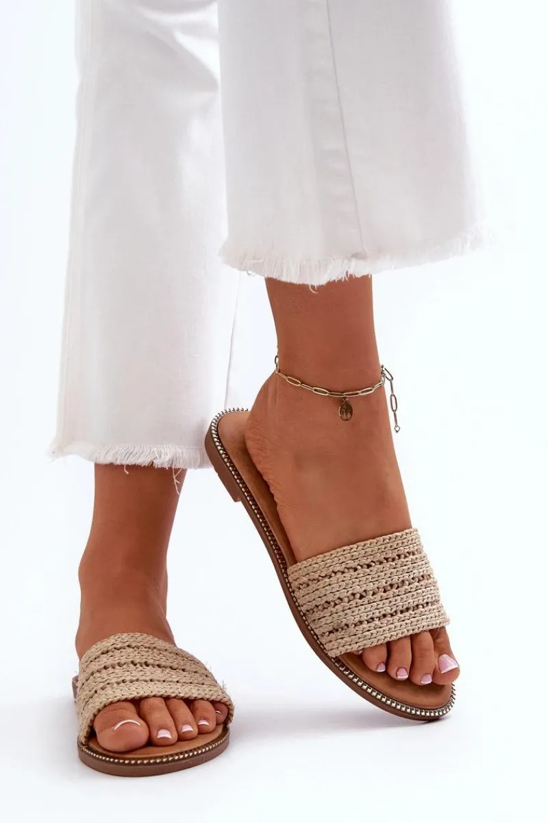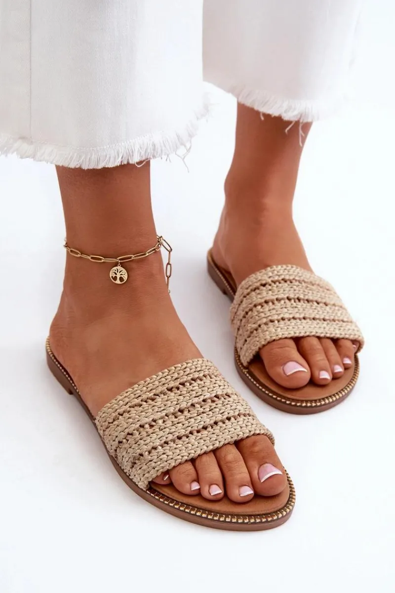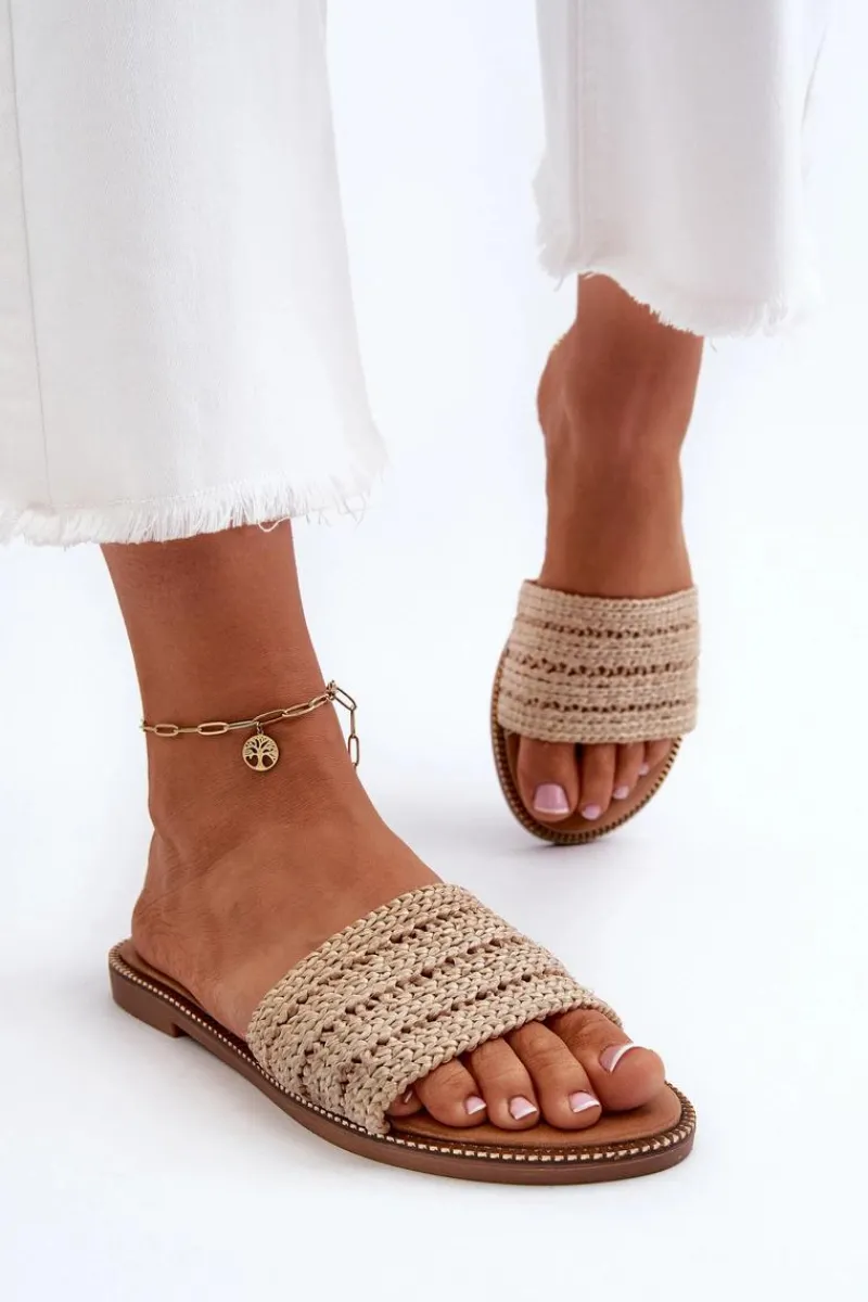 Klasyczne klapki damskie na płaskim obcasie to niezawodny wybór na letnie dni. Prosty design sprawia, że doskonale pasują do wielu letnich stylizacji. Z przodu szeroki pasek z plecionką. Te klapki są doskonałym wyborem dla kobiet ceniących zarówno styl, jak i komfort. Przy wyborze rozmiaru prosimy sugerować się tabelą rozmiarów.