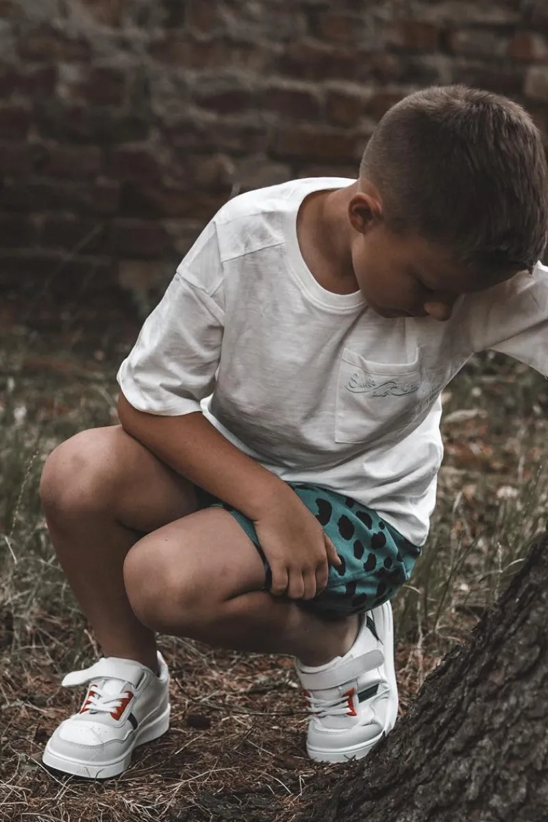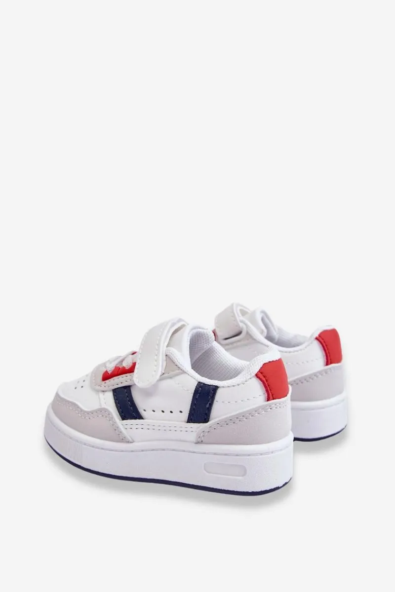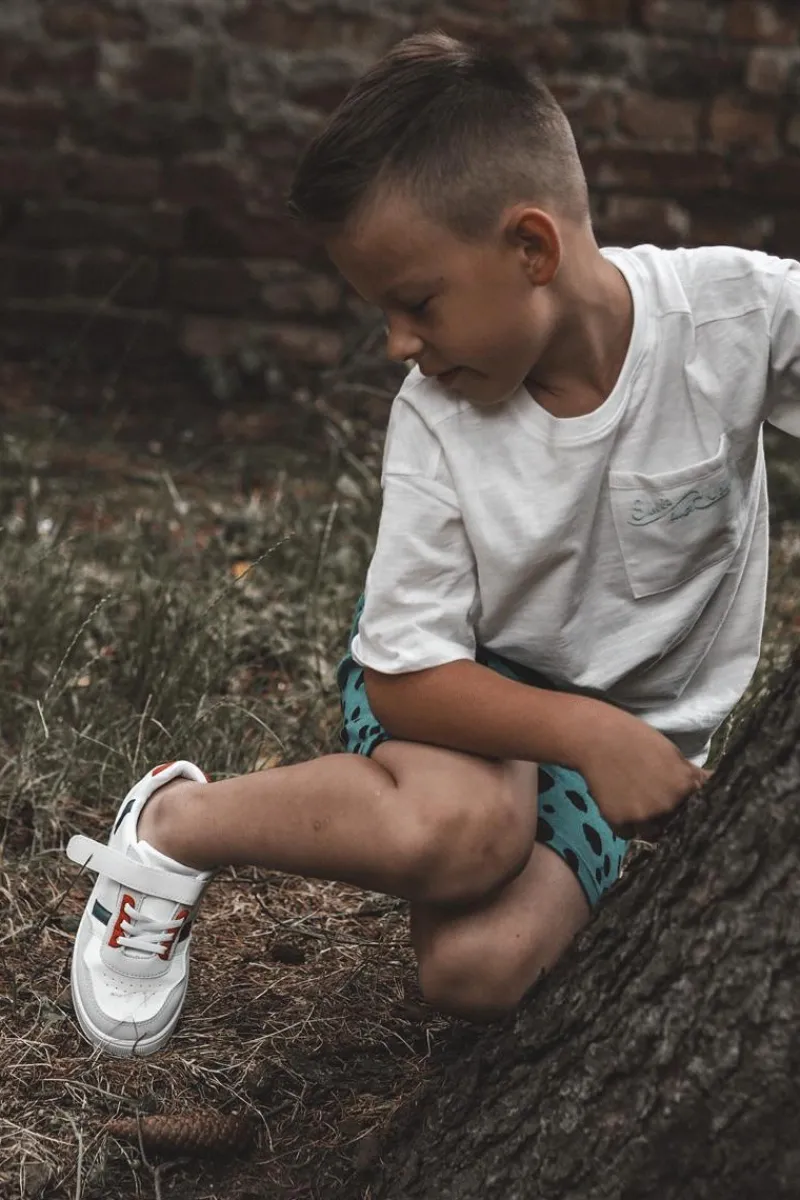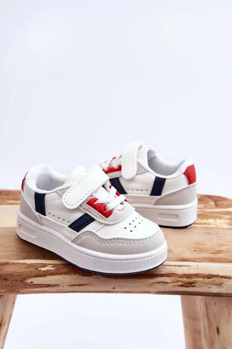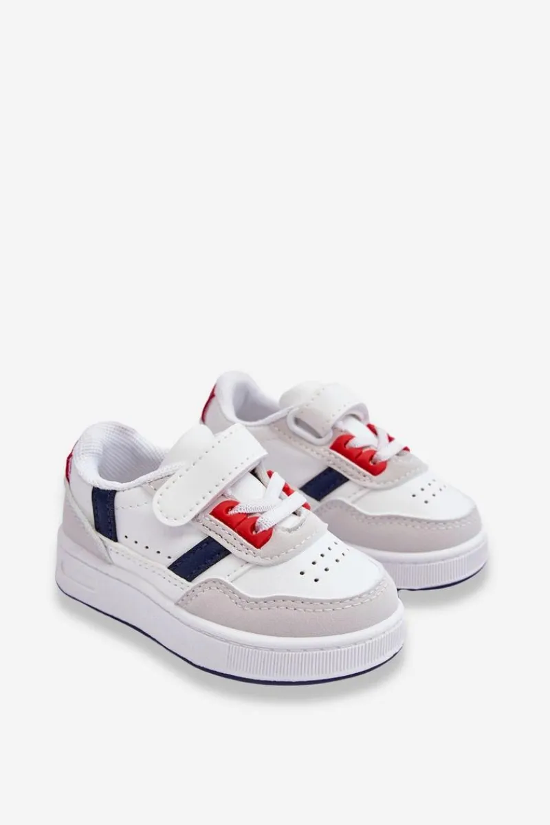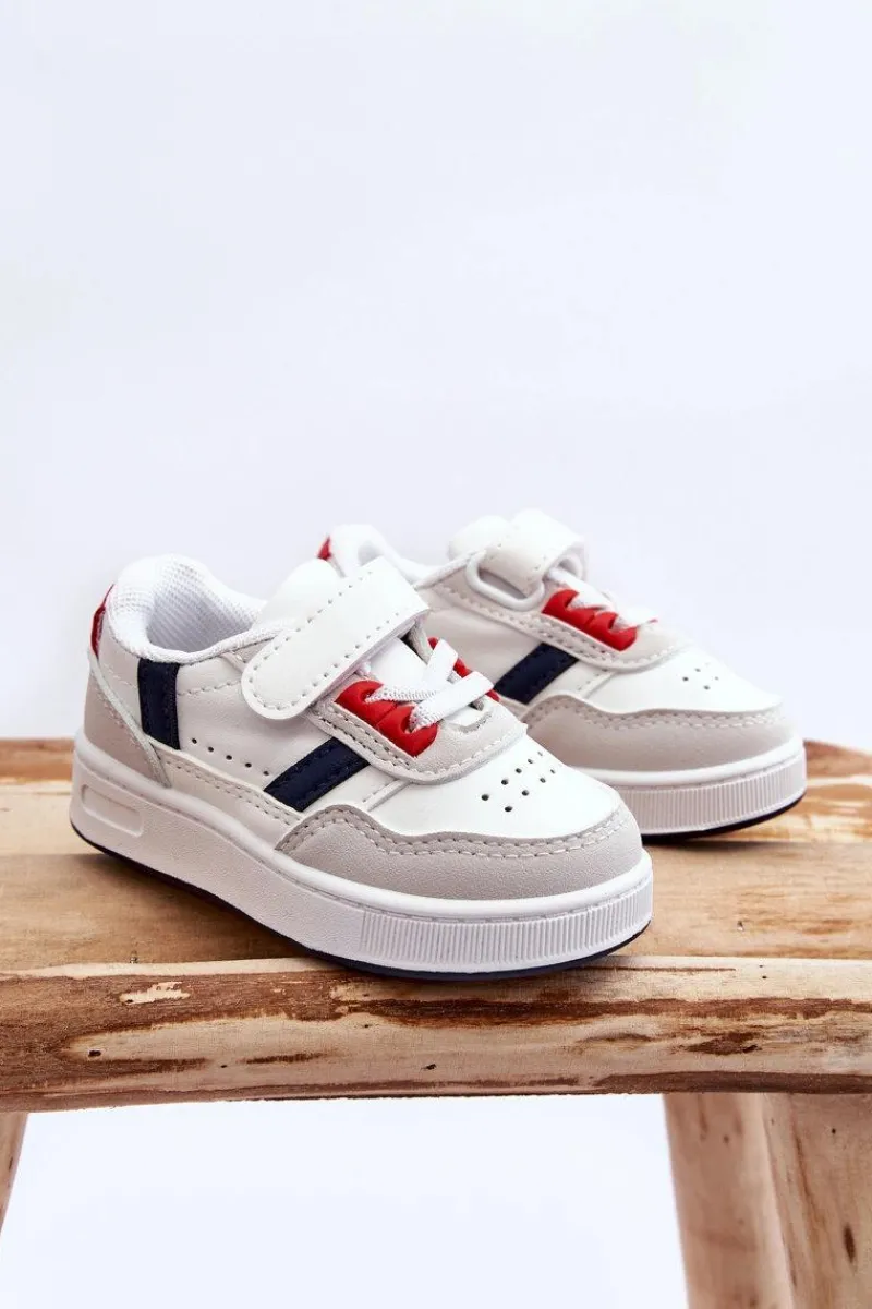 Dziecięce buty sportowe wykonane z eko skóry posiadają na przodzie delikatną perforację. Osadzone na platformie z tworzywa sztucznego. Wkładka została wykonana z materiału. Ten model z pewnością przypadnie do gustu Twojemu dziecku! Sneakersy posiadają zapinanie na rzep. Przy wyborze rozmiaru prosimy sugerować się tabelą rozmiarów.