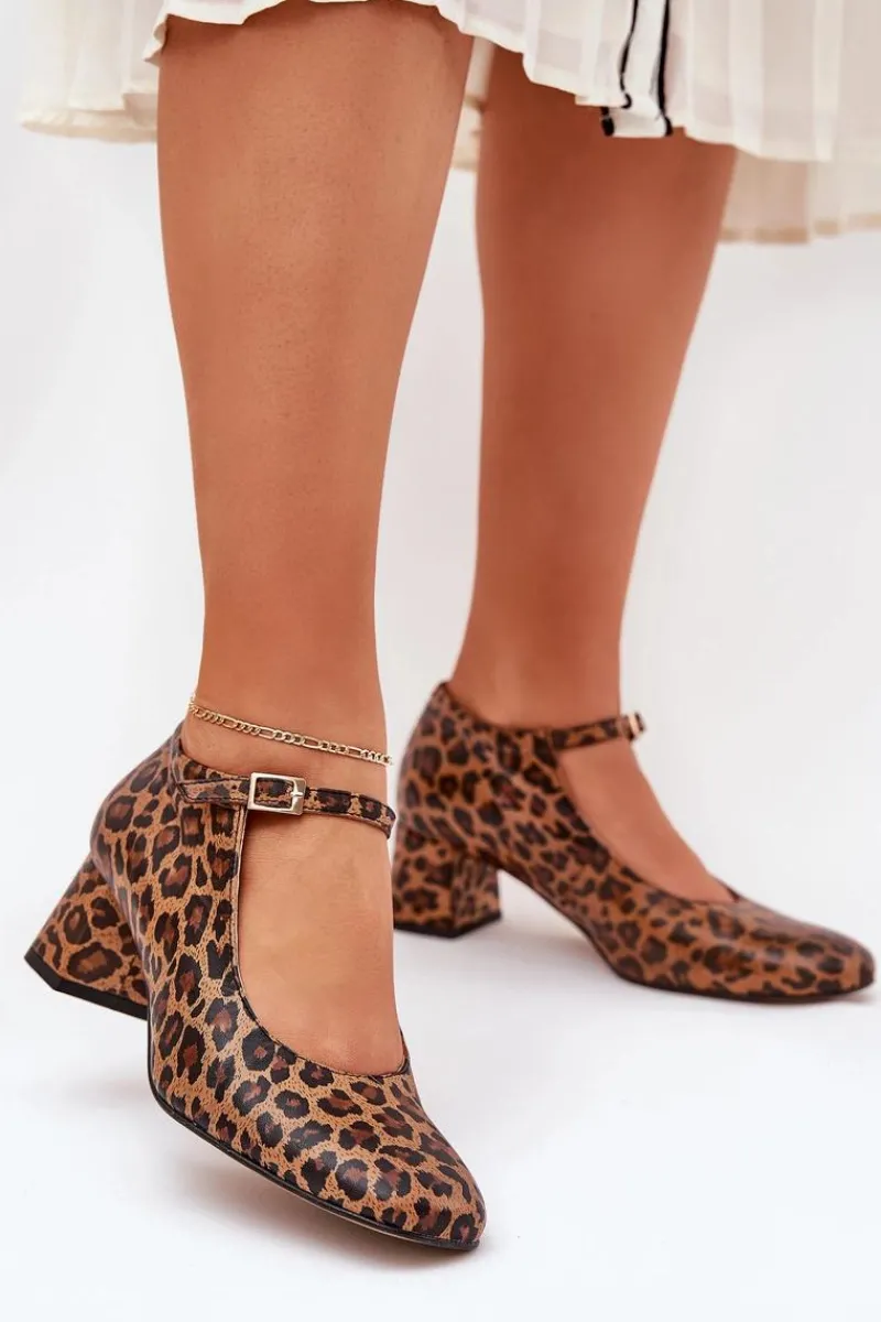 Czółenka damskie z naturalnej skóry to elegancka propozycja na wyjątkowe okazje. Osadzone na obcasie w formie słupka, zapewniają stabilność i komfort przez cały dzień. Zapinane na regulowany pasek ze sprzączką, co umożliwia idealne dopasowanie i stabilizacje stopy. Te stylowe czółenka doskonale sprawdzą się zarówno w codziennych, jak i wieczorowych stylizacjach. Przy wyborze rozmiaru prosimy sugerować się tabelą rozmiarów.