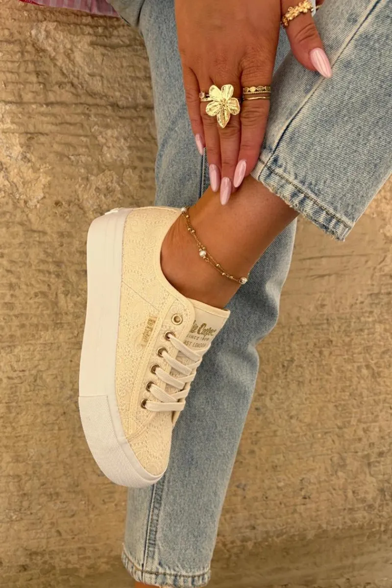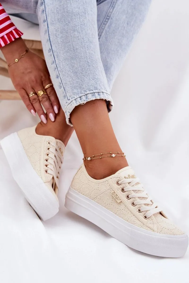 Damskie trampki od marki Lee Cooper, wykonane z materiału tekstylnego, to połączenie komfortu i unikalnego stylu. Model wyróżnia się koronkową cholewką, która nadaje im delikatnego, dziewczęcego charakteru. Zaokrąglone noski zapewniają wygodę przez cały dzień, a miękka wkładka gwarantuje komfort i odpowiednią amortyzację. Idealne do casualowych stylizacji, te trampki będą świetnym wyborem na co dzień, łącząc funkcjonalność z eleganckim wyglądem. Przy wyborze rozmiaru prosimy sugerować się poniższą tabelą rozmiarów.