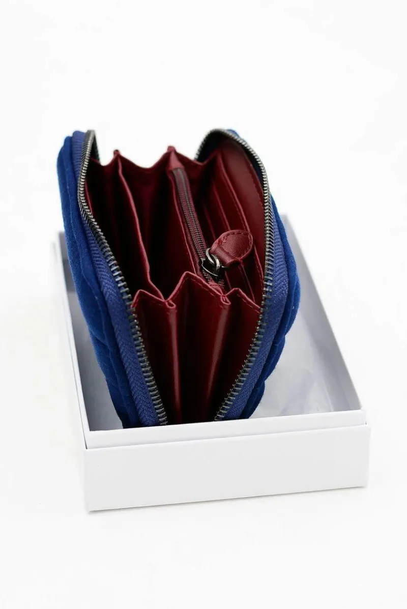 Dopełnieniem każdej kobiecej stylizacji jest nie tylko torebka i buty ale również dobrze dobrany portfel. Portfel wykonany z najwyższej jakości delikatnego materiału tekstylnego. Portfel zapinany jest na srebrny suwak. Wewnątrz znajdują się 3 duże kieszonki na banknoty/inne dokumenty oraz 1 duża zapinana na suwak komora na bilon, 5 małych kieszonek na karty.