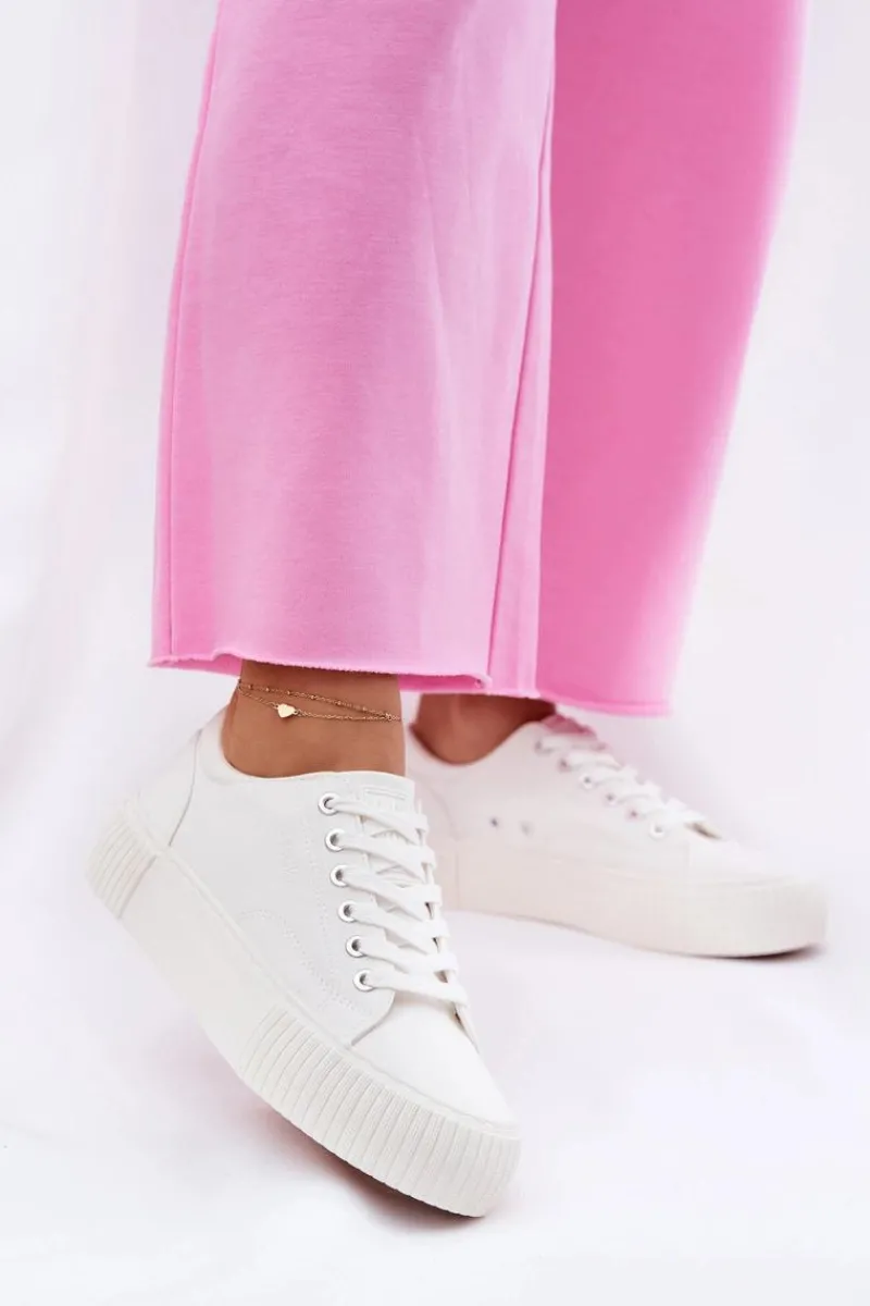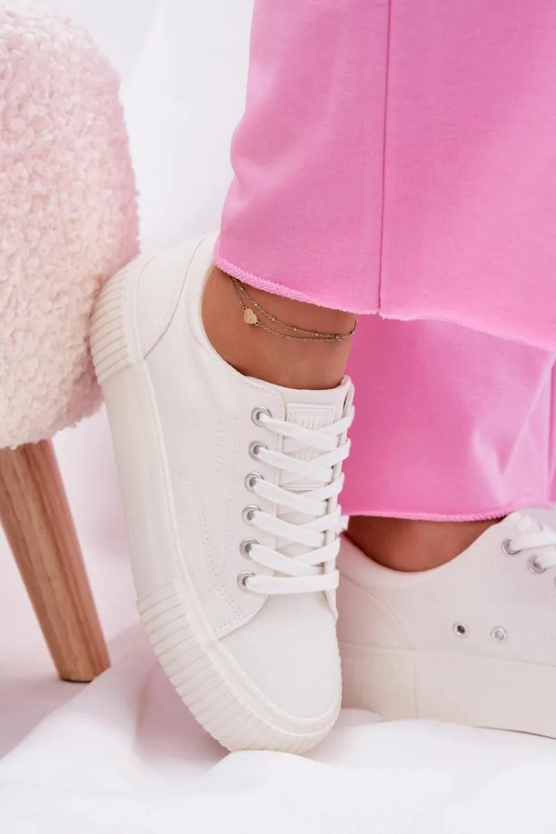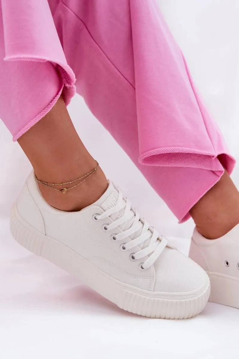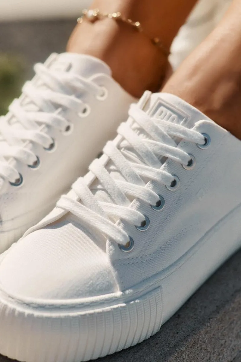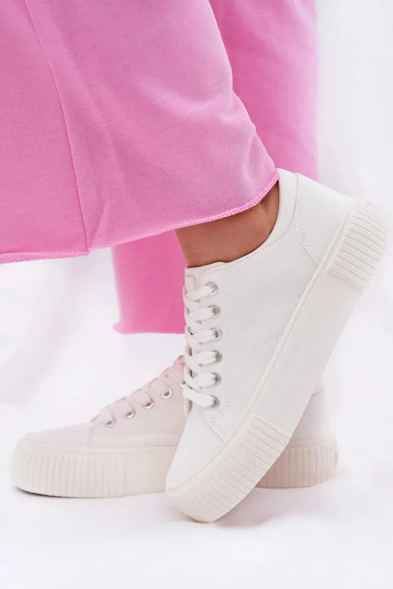 Trampki damskie od marki Big Star, wykonane z materiału tekstylnego. Idealne na co dzień, te trampki łączą wygodę z prostym, ponadczasowym stylem. Osadzone na platformie, która delikatnie unosi sylwetkę oraz zapewnia dodatkową wysokość i komfort. Doskonale pasują do wielu casualowych stylizacji, zapewniając komfort i lekkość na każdym kroku.
