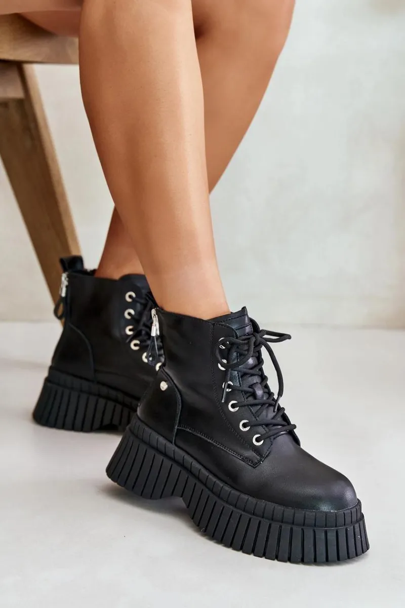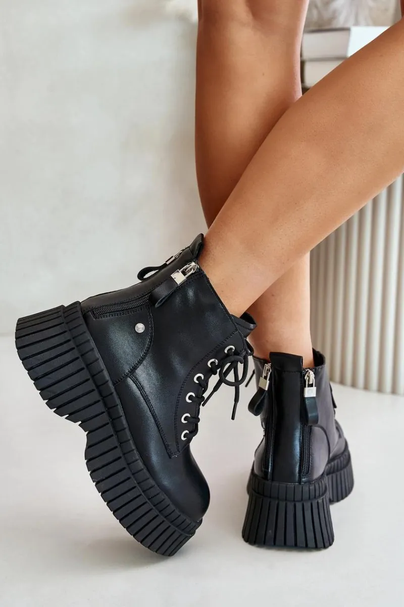 Trapery damskie od marki Goe to połączenie stylu i funkcjonalności. Wykonane z wysokiej jakości skóry naturalnej, gwarantują trwałość i komfort użytkowania. Osadzone na masywnej podeszwie, zapewniają doskonałą przyczepność na różnych nawierzchniach, co czyni je idealnym wyborem na chłodniejsze dni. Wnętrze butów ocieplane jest kocem obuwniczym, co sprawia, że stopy pozostają ciepłe. Trapery zapinane są na zamek, a dodatkowe sznurowanie umożliwia idealne dopasowanie do stopy, co zwiększa komfort noszenia oraz nadaje im modny, casualowy wygląd. Idealne na codzienne spacery czy weekendowe wypady. Przy wyborze rozmiaru prosimy kierować się tabelą rozmiarów