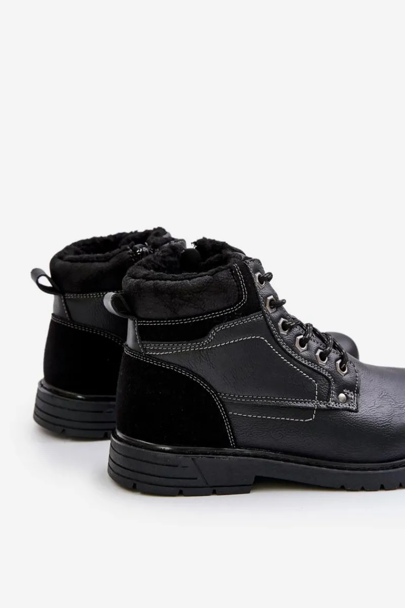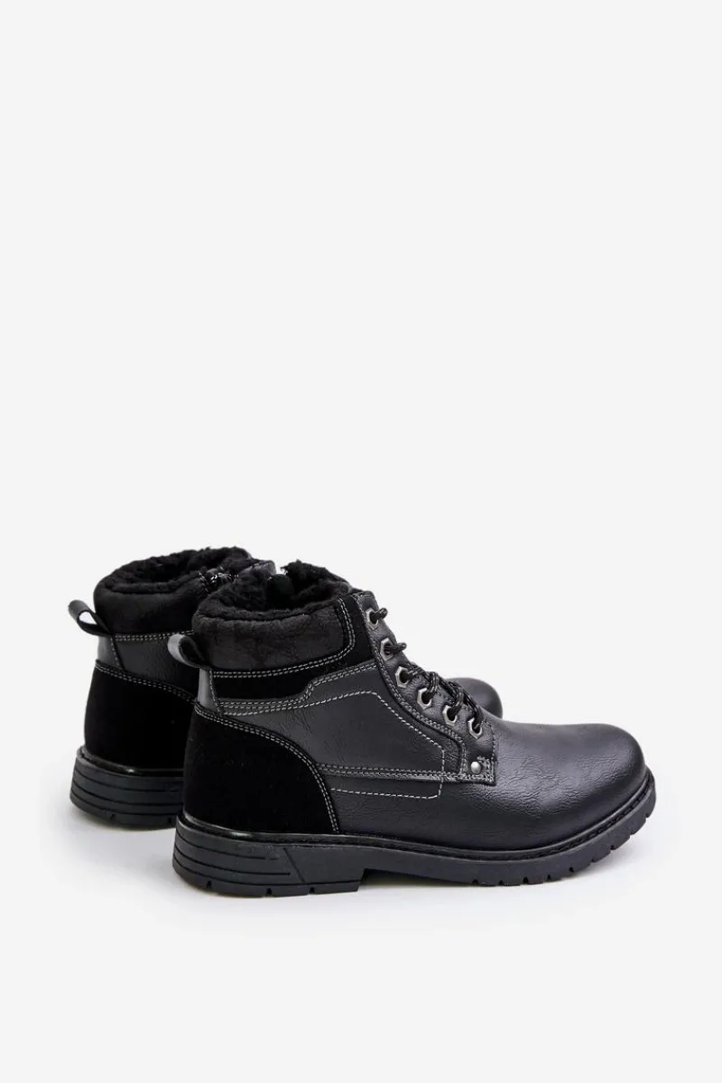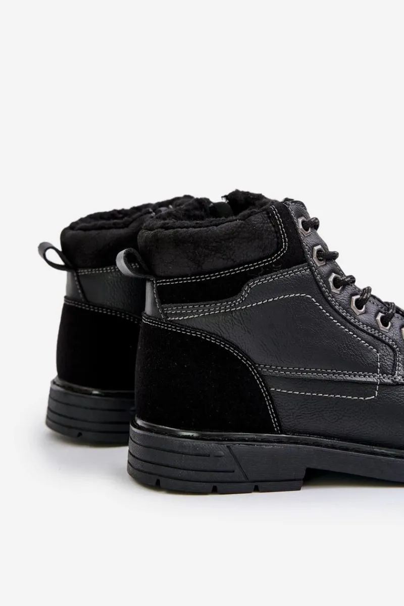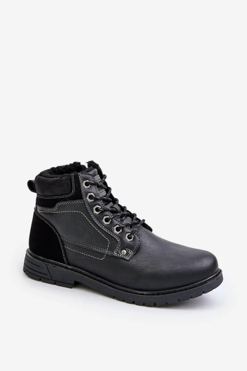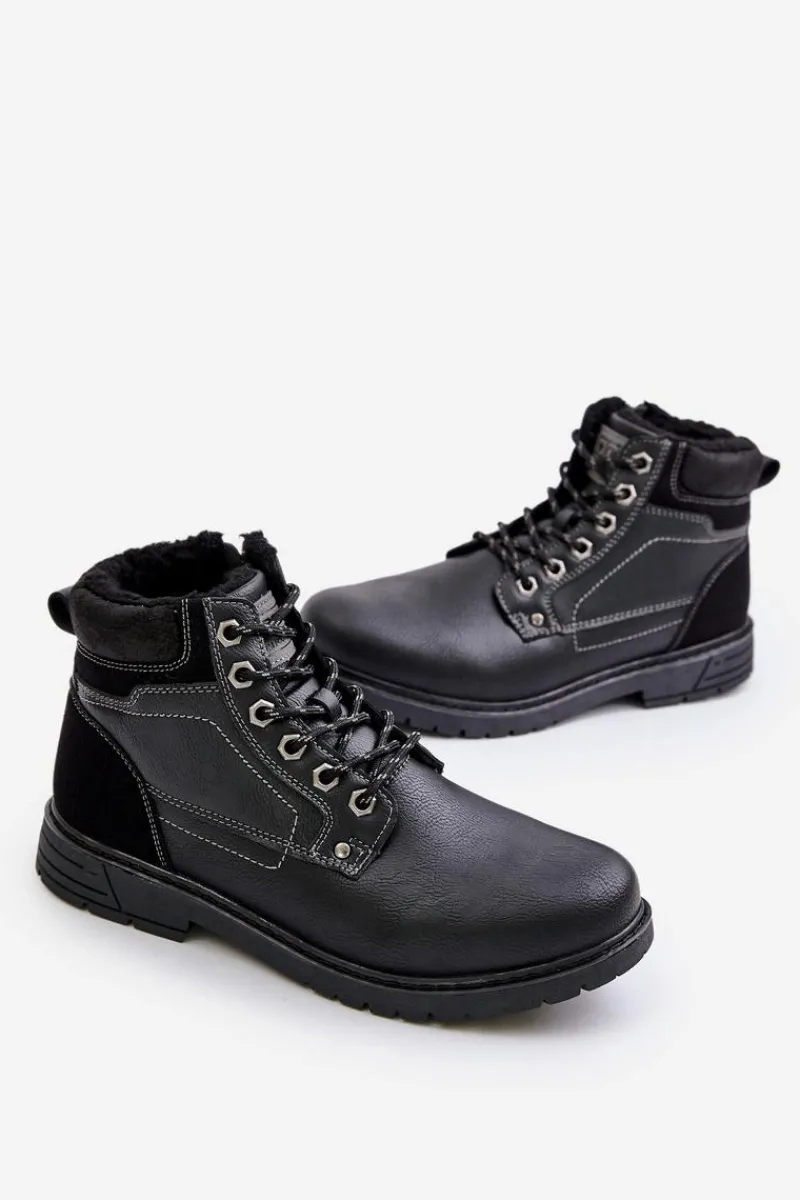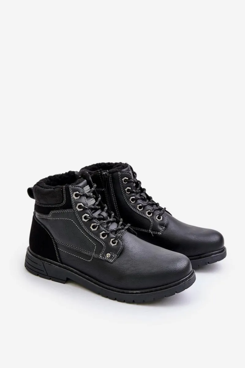 New Ocieplane Trapery Męskie Z Eko Skóry Czarne Venredia Męskie Obuwie Trekkingowe Męskie|Botki Męskie