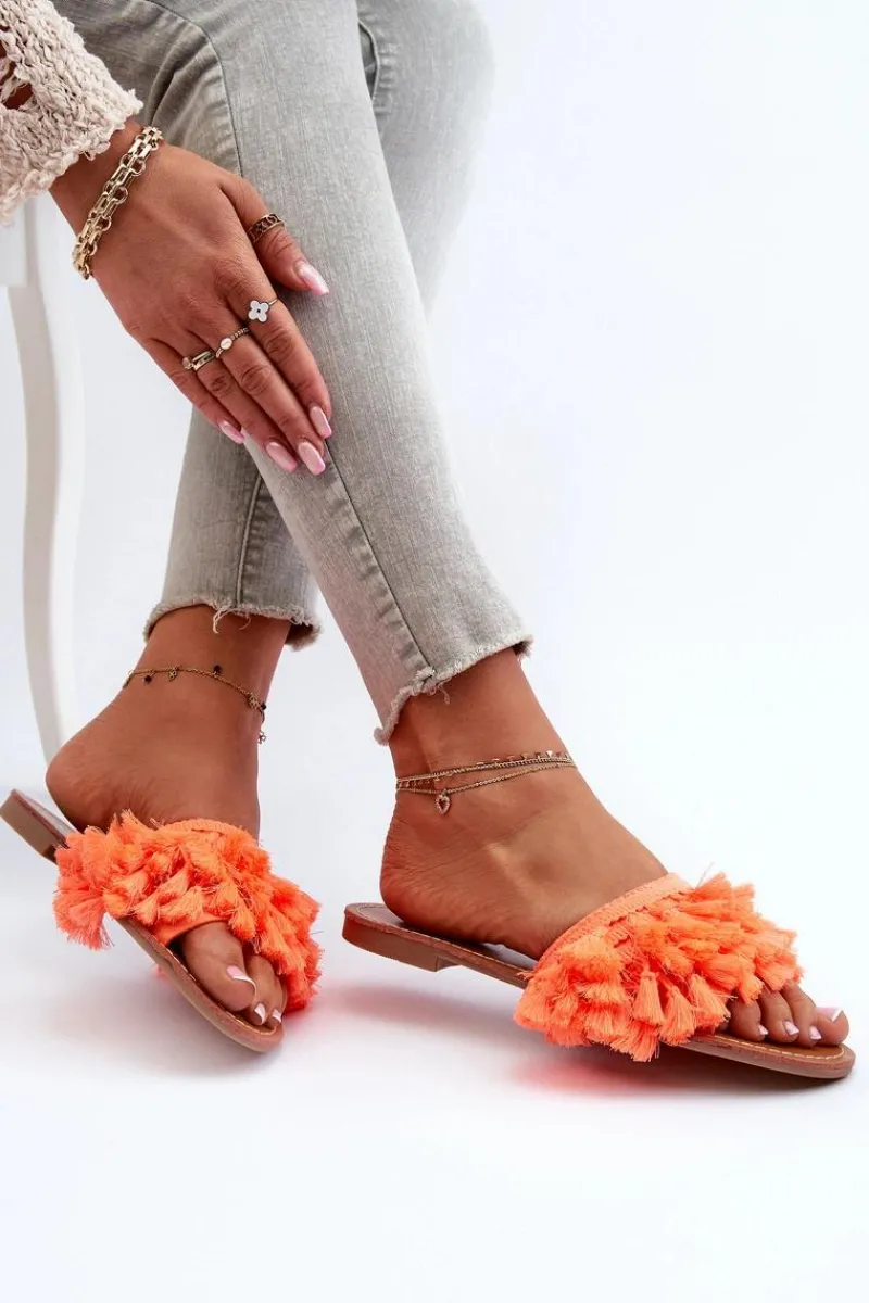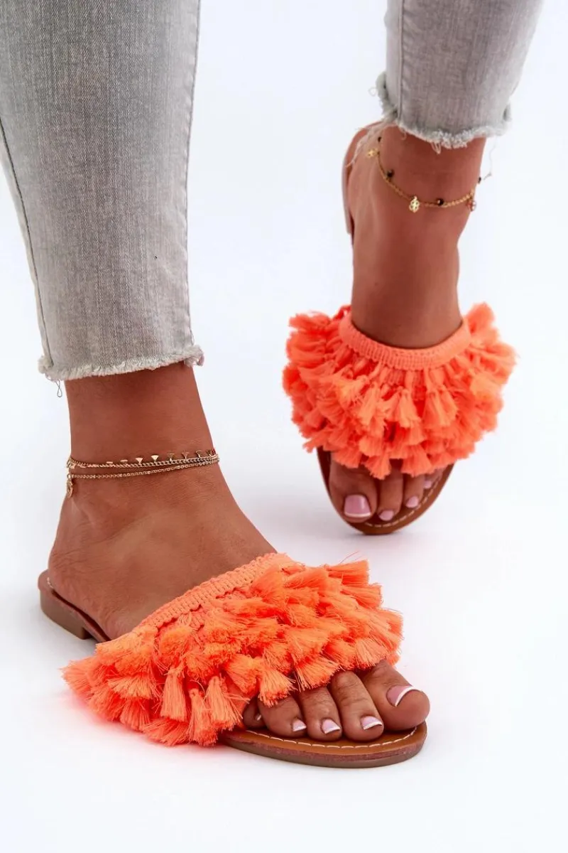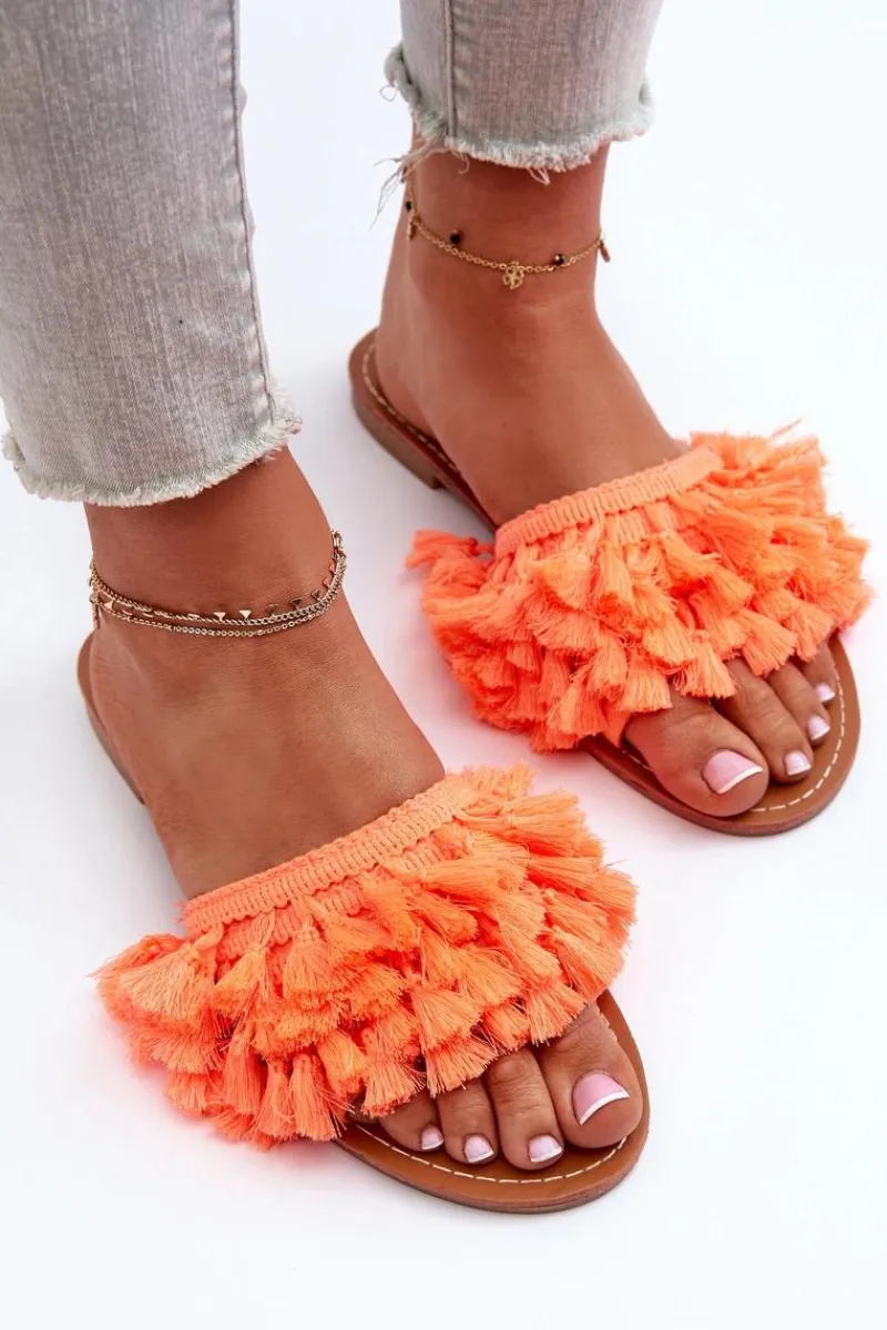 Klapki na płaskim obcasie z frędzlami to doskonały wybór dla kobiet, które szukają stylowego i wygodnego obuwia na letnie dni. Frędzle dodają im oryginalności, a płaski obcas gwarantuje komfort noszenia przez cały dzień. Te klapki będą doskonałym uzupełnieniem letnich stylizacji! Przy wyborze rozmiaru prosimy sugerować się tabelą rozmiarów.
