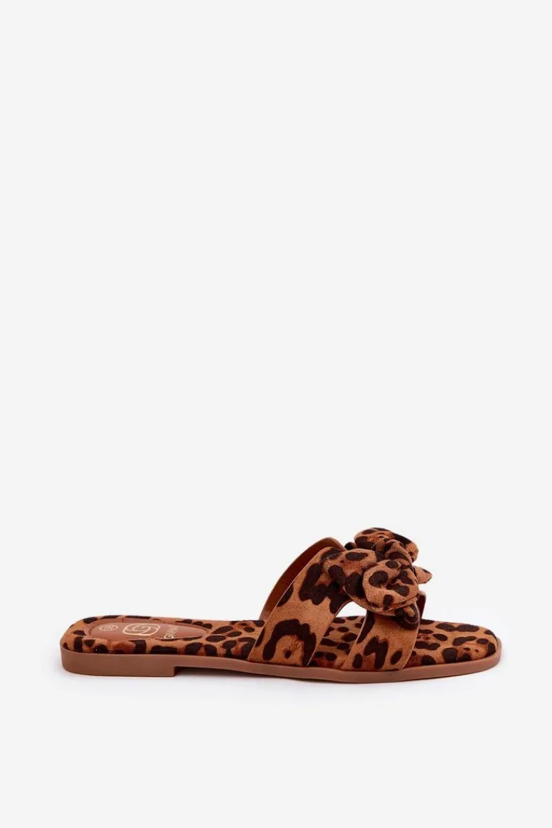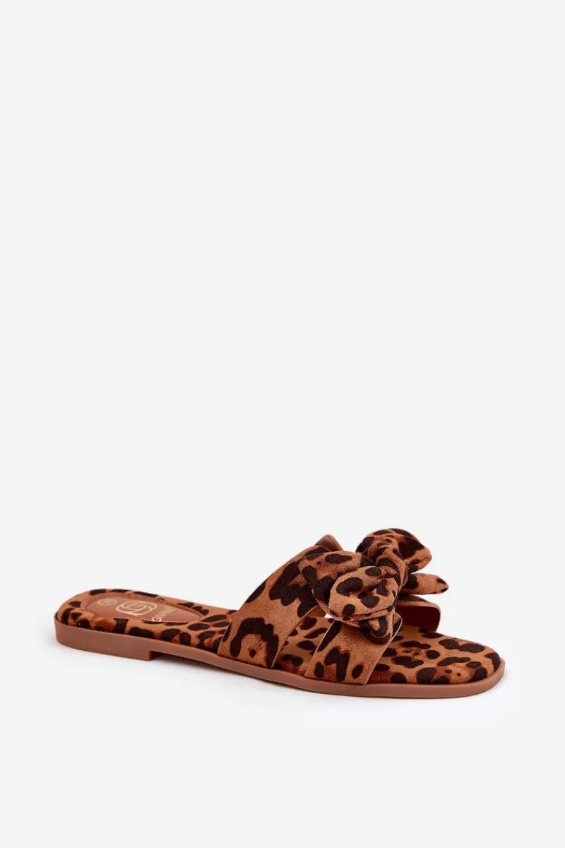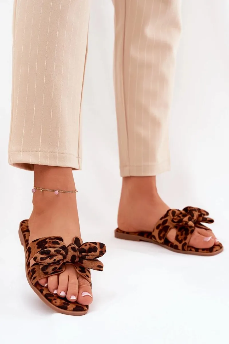 Klapki damskie wykonane z eko zamszu. Osadzone na płaskim obcasie, które łączą komfort z subtelnym stylem. Przód butów ozdobiony jest wycięciami oraz uroczą kokardką, co nadaje im wyjątkowego charakteru. Doskonale pasują do letnich sukienek, spódnic czy szortów, łącząc prosty design z funkcjonalnością, idealnie wpisując się w wakacyjny styl. Przy wyborze rozmiaru prosimy sugerować się tabelą rozmiarów.