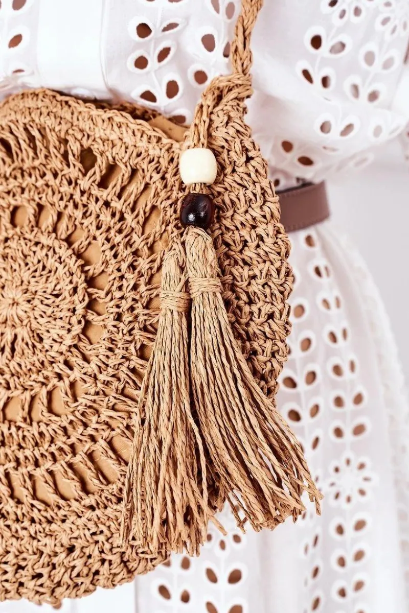 New Pleciona Okrągła Torebka Boho BRUNO ROSSI Camel Torebki Plażowe|Torebki Klasyczne