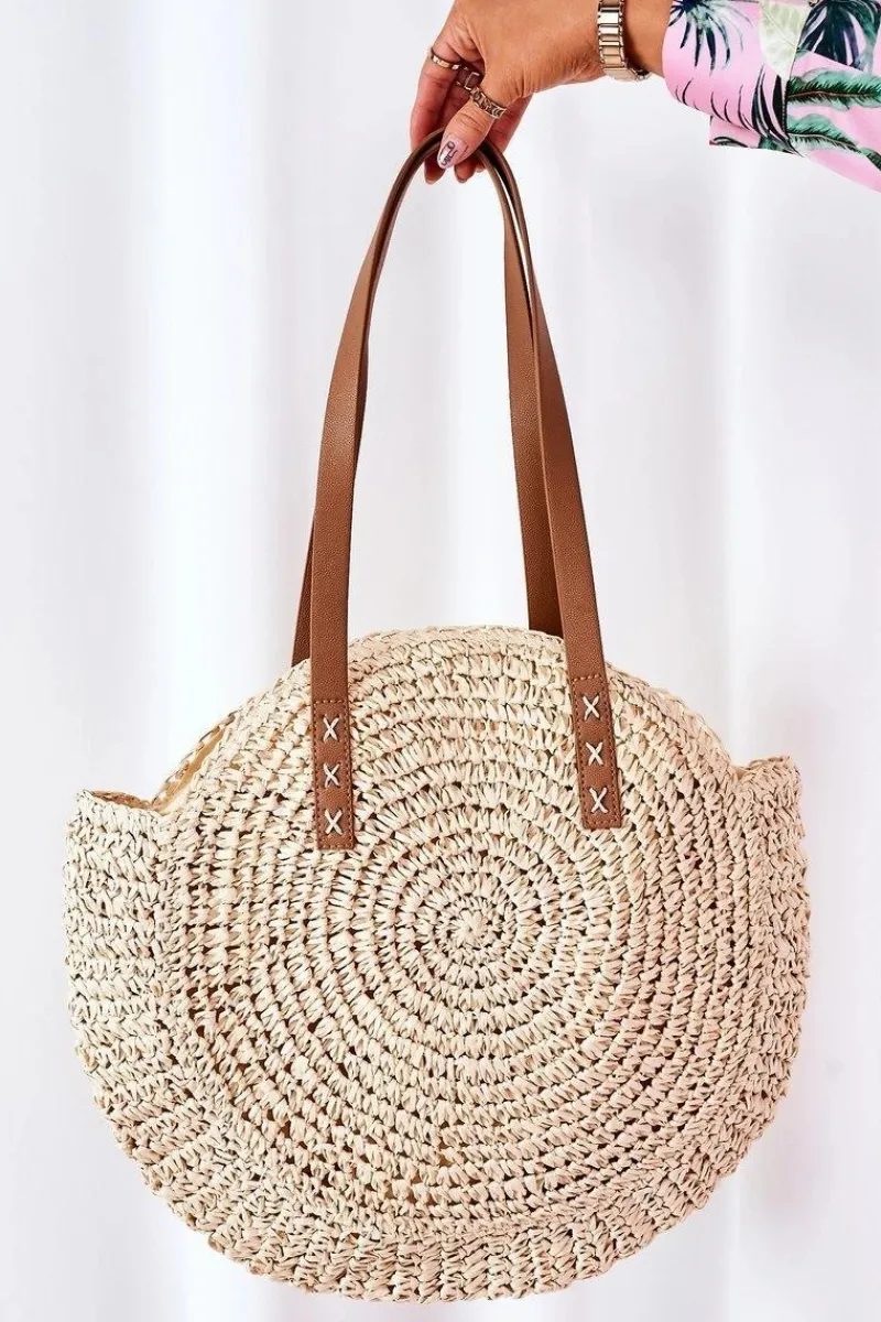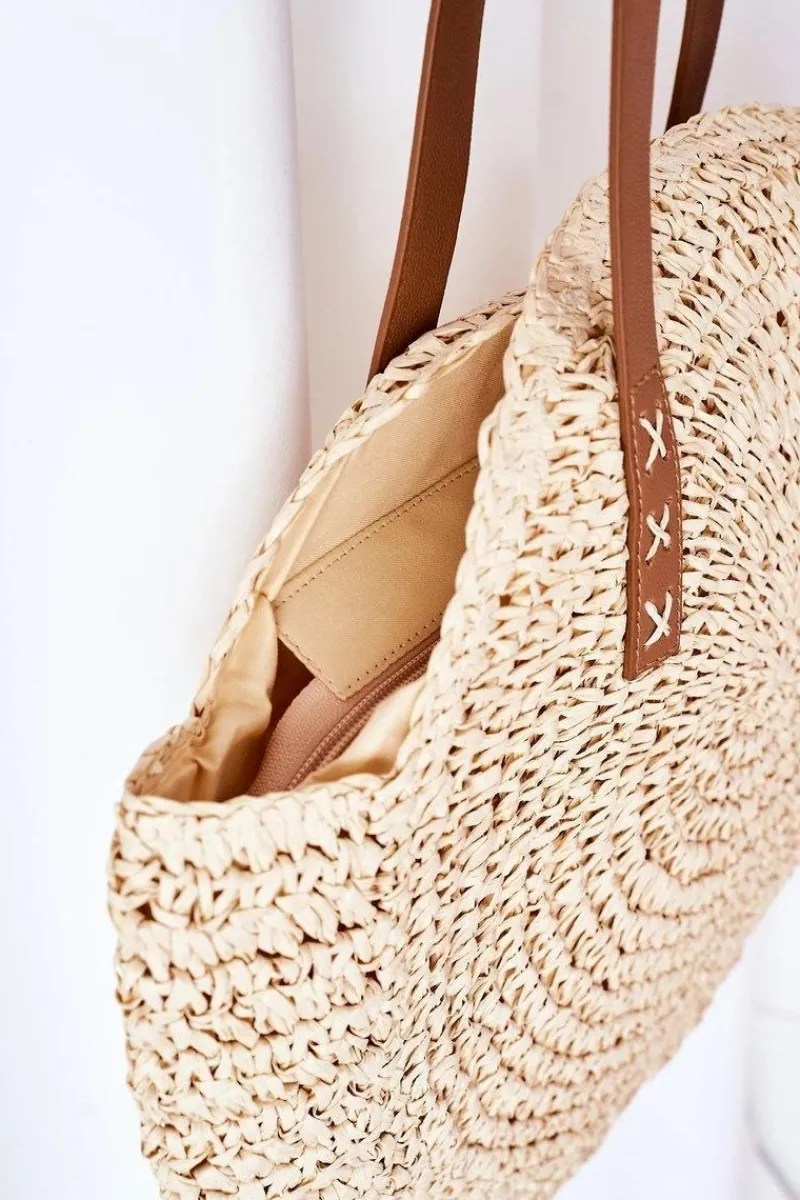 New Pleciona Torebka Boho Na Ramię BRUNO ROSSI Beżowa Torebki Plażowe|Torebki Klasyczne